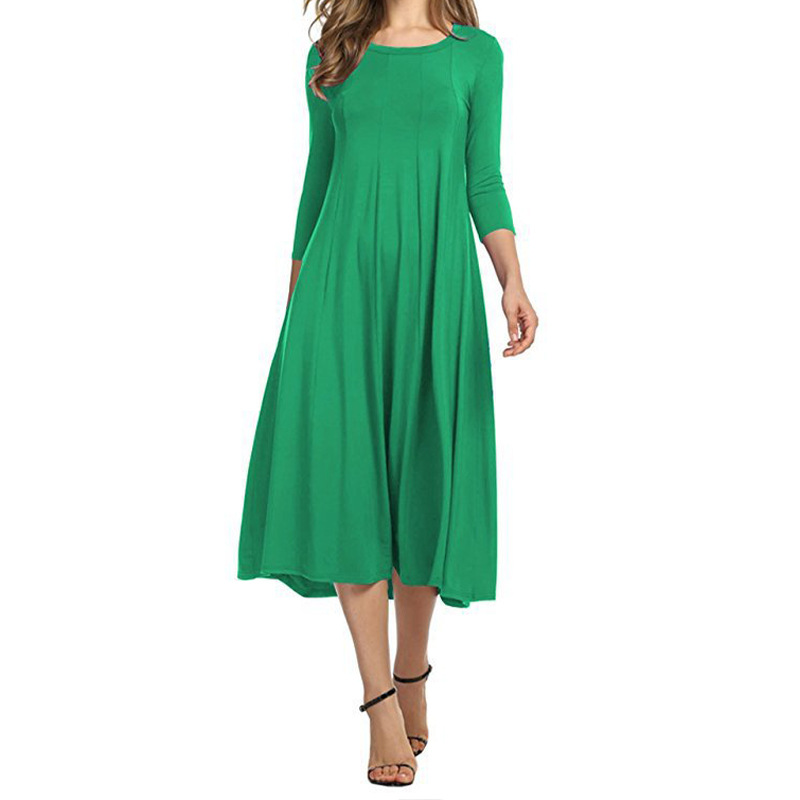 2024 유럽과 미국의 가을 새로운 아마존 이베이 국경 라운드 넥 하프 소매 단색 대형 스윙 원피스스토어 가기