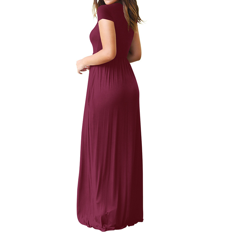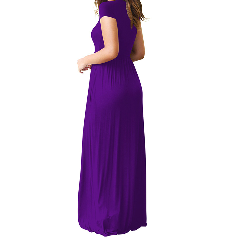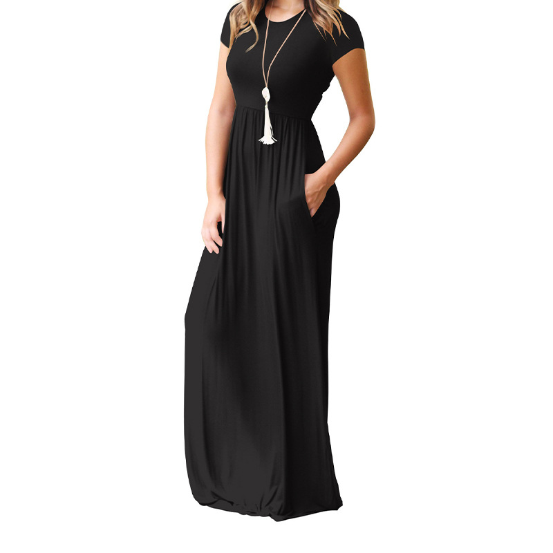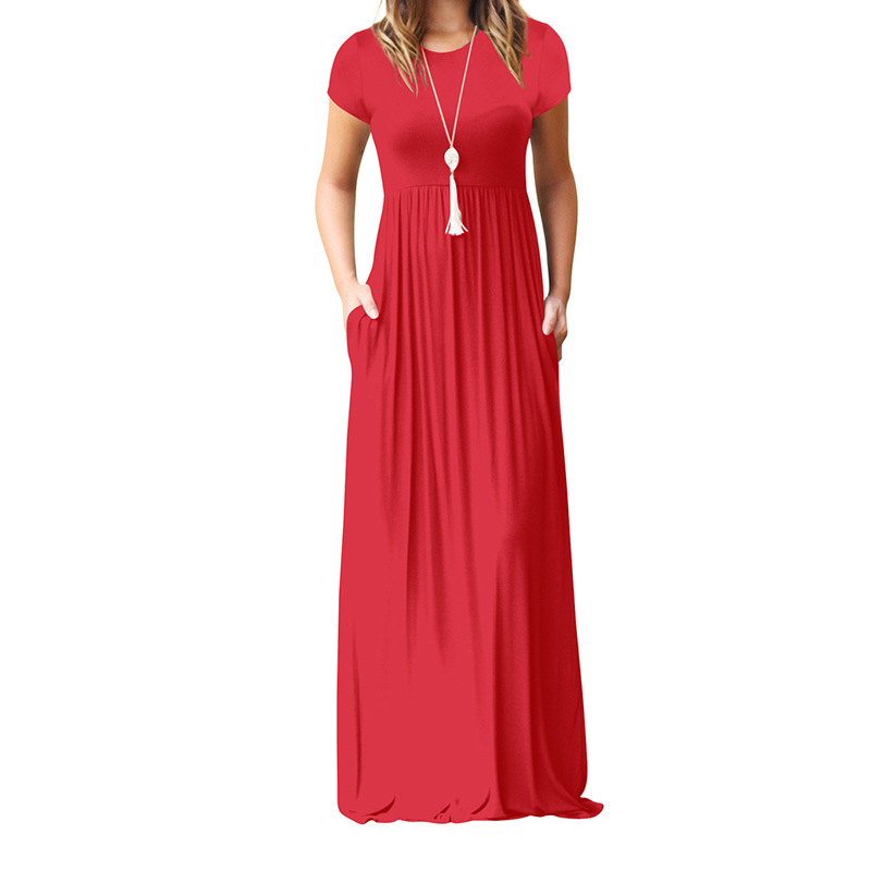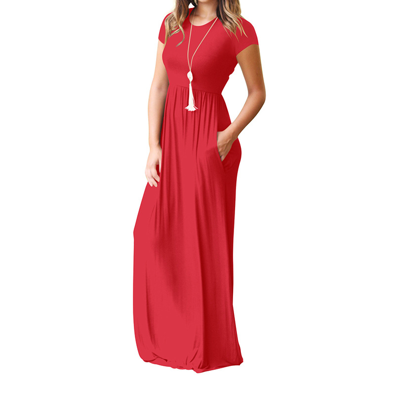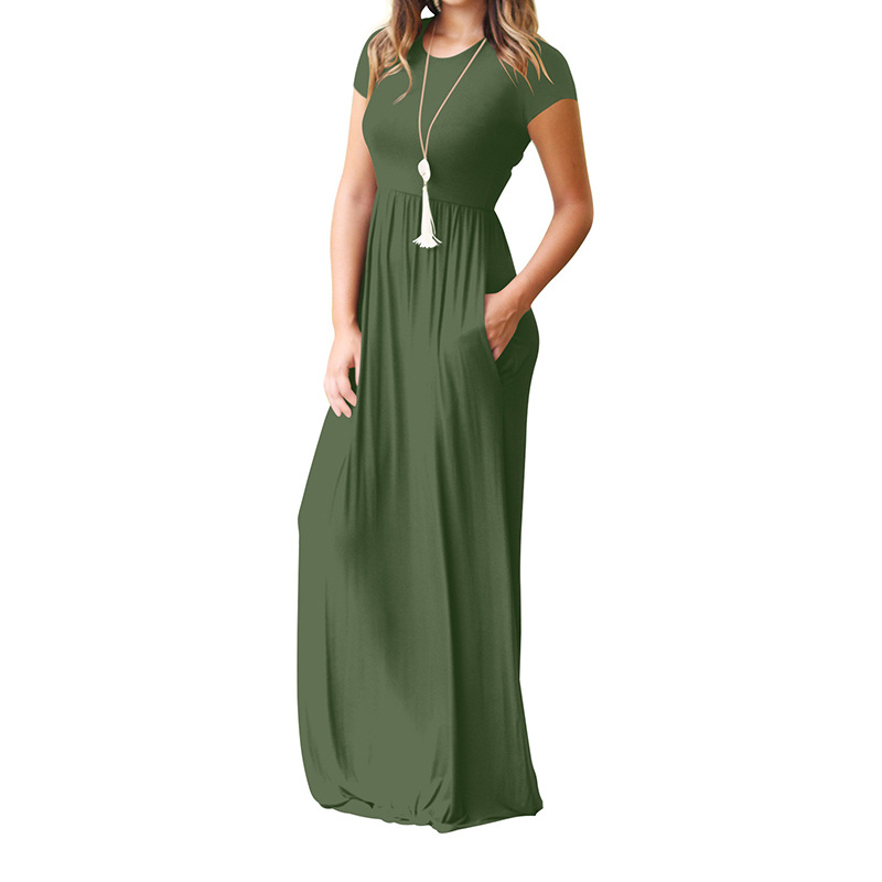 국경 간 공급 유럽과 미국 여성 원피스 아마존 봄과 여름 짧은 소매 단색 허리 꽉 캐주얼 포켓 원피스 여성