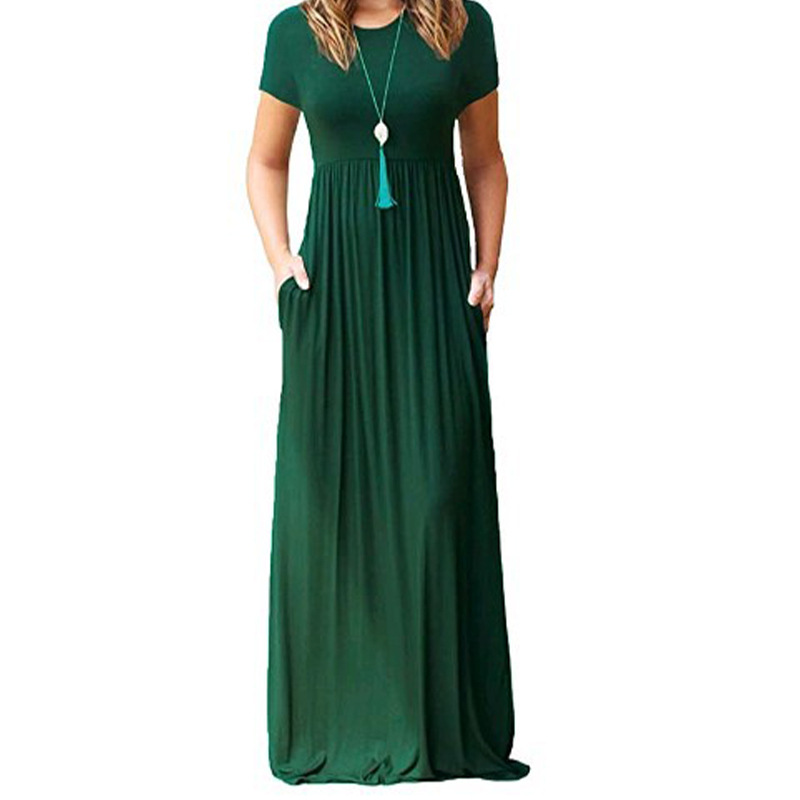 국경 간 공급 유럽과 미국 여성 원피스 아마존 봄과 여름 짧은 소매 단색 허리 꽉 캐주얼 포켓 원피스 여성스토어 가기
