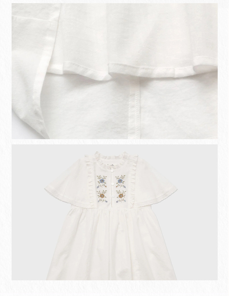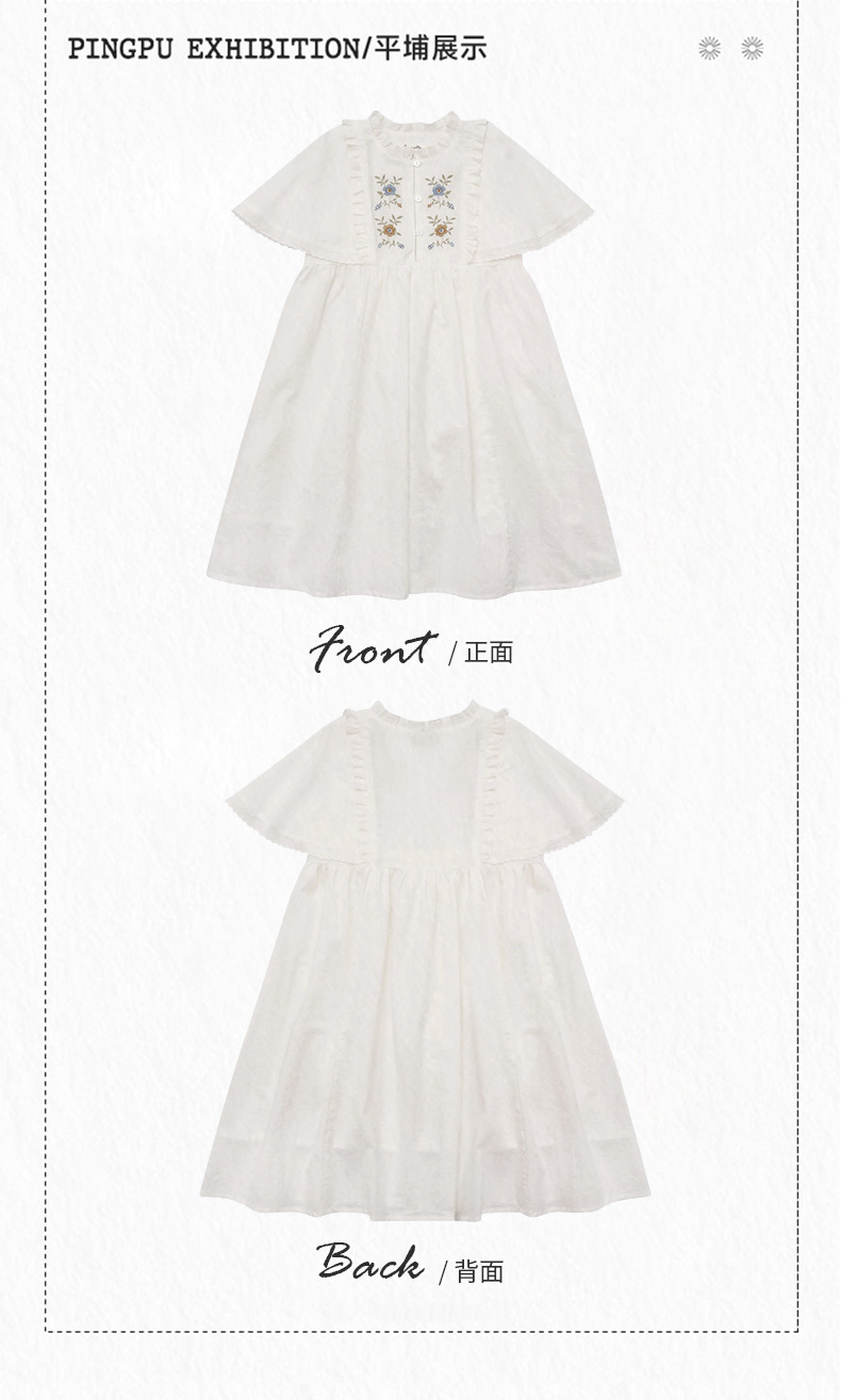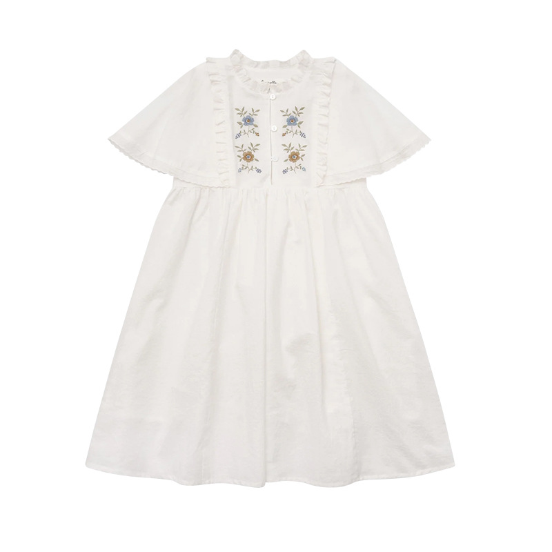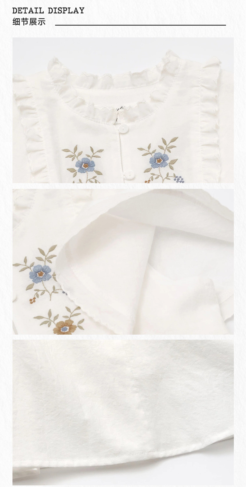 여아용 한국 스타일 플로시 원피스, 워싱 코튼 민소매 러플 자수 원피스, 봄 여름스토어 가기