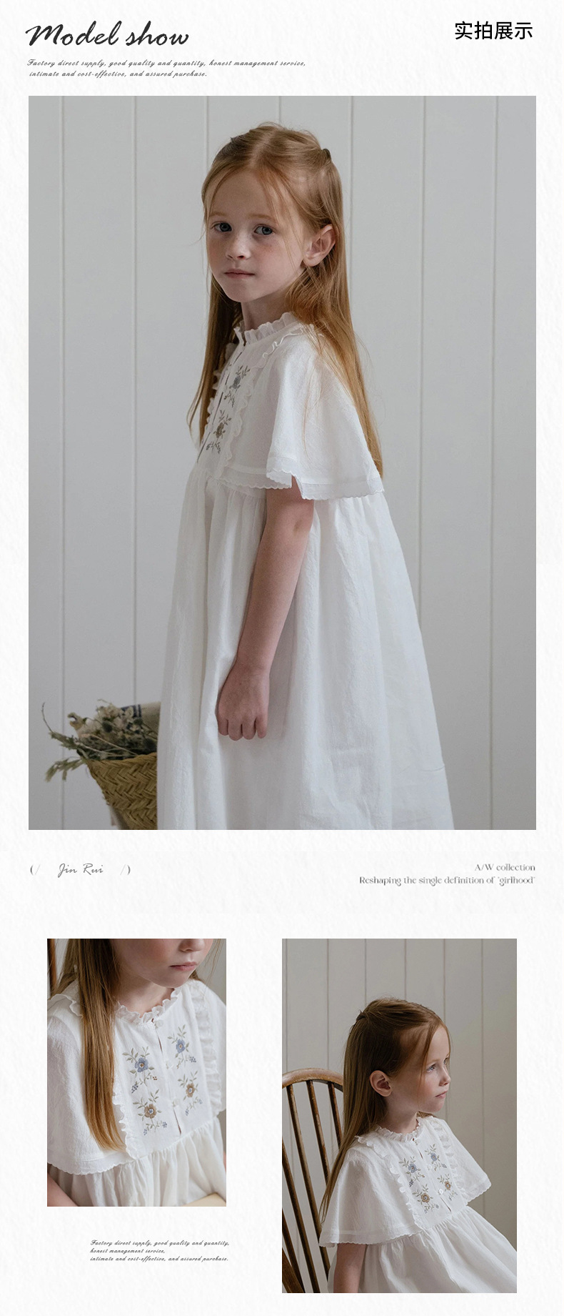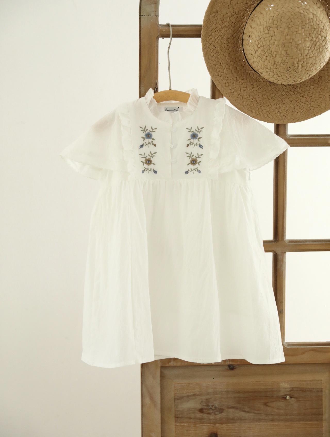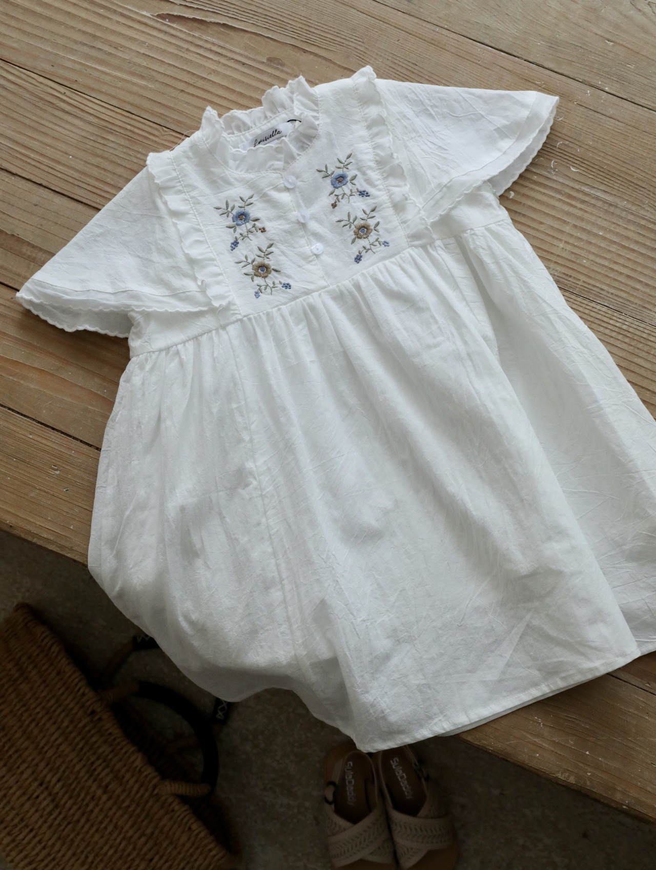 여아용 한국 스타일 플로시 원피스, 워싱 코튼 민소매 러플 자수 원피스, 봄 여름스토어 가기