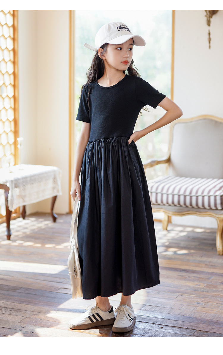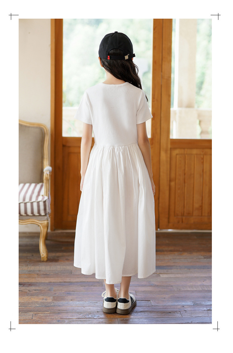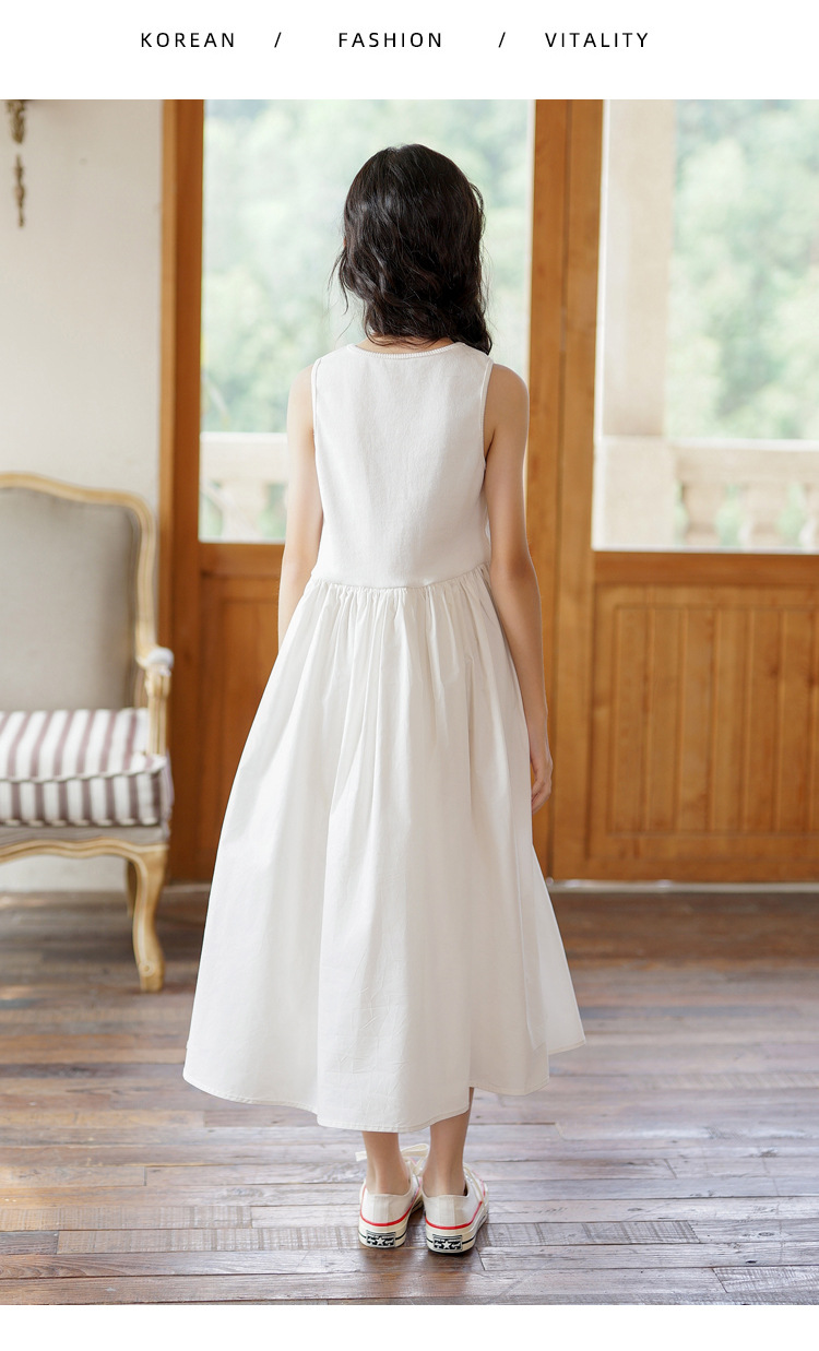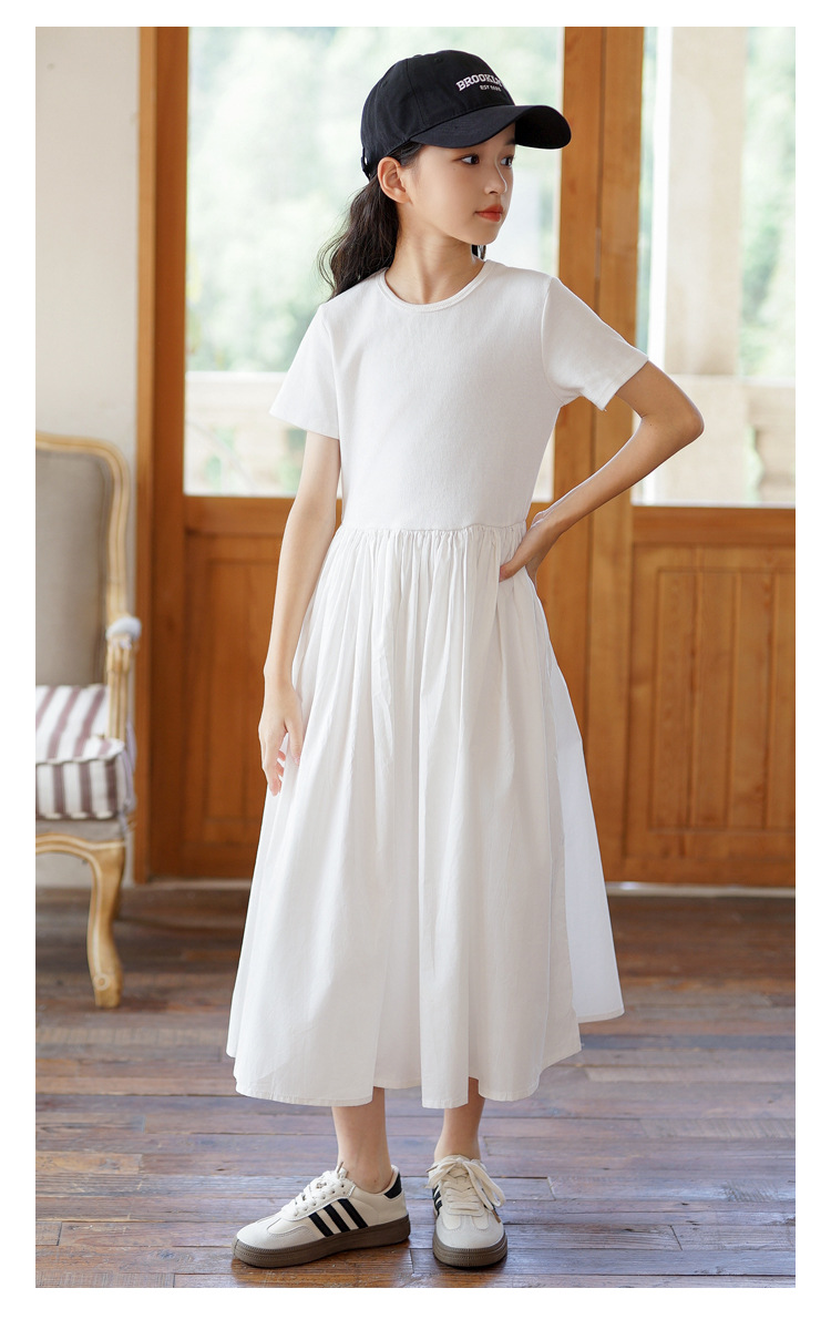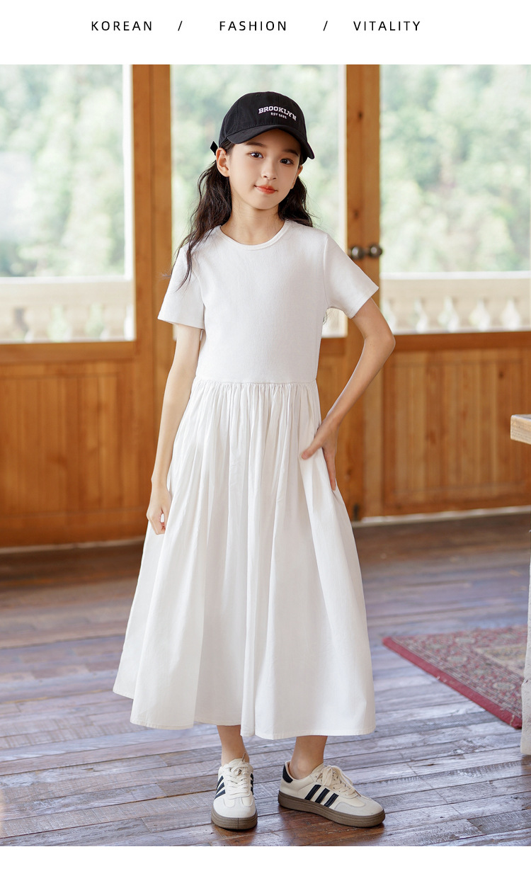 소녀 원피스 여름 민소매 조끼 단색 코튼 스커트 2024 노인을위한 한국 스타일의 새로운 공주 원피스스토어 가기