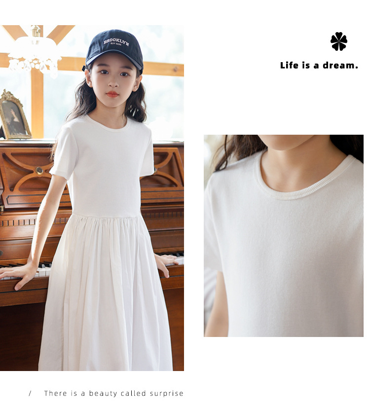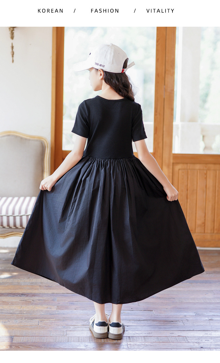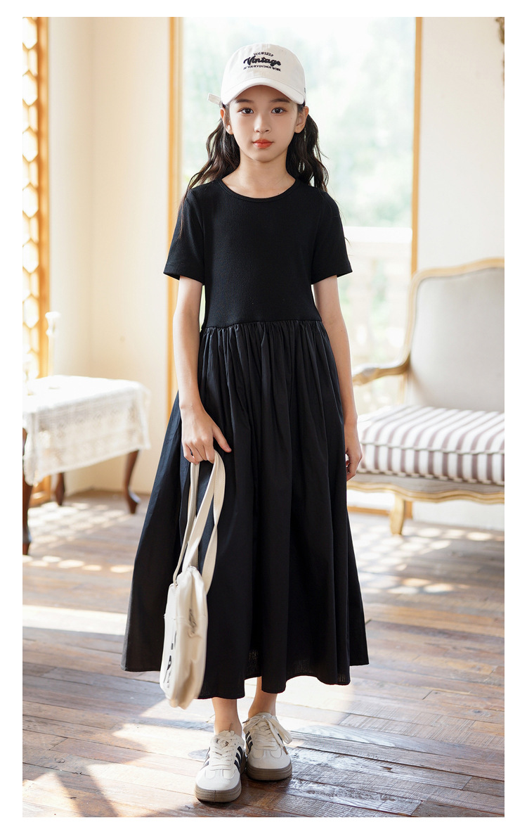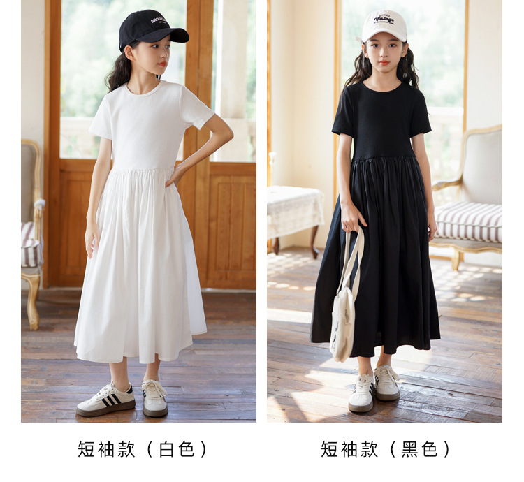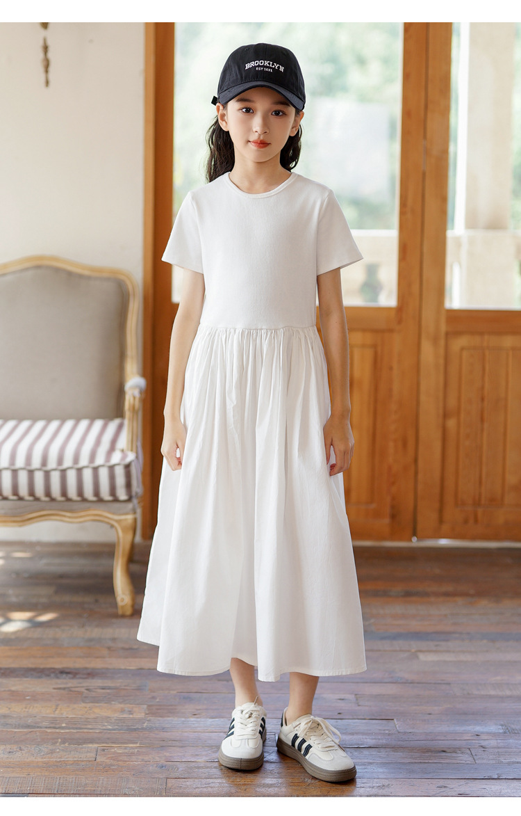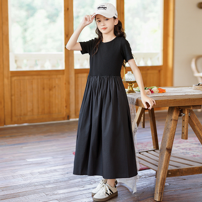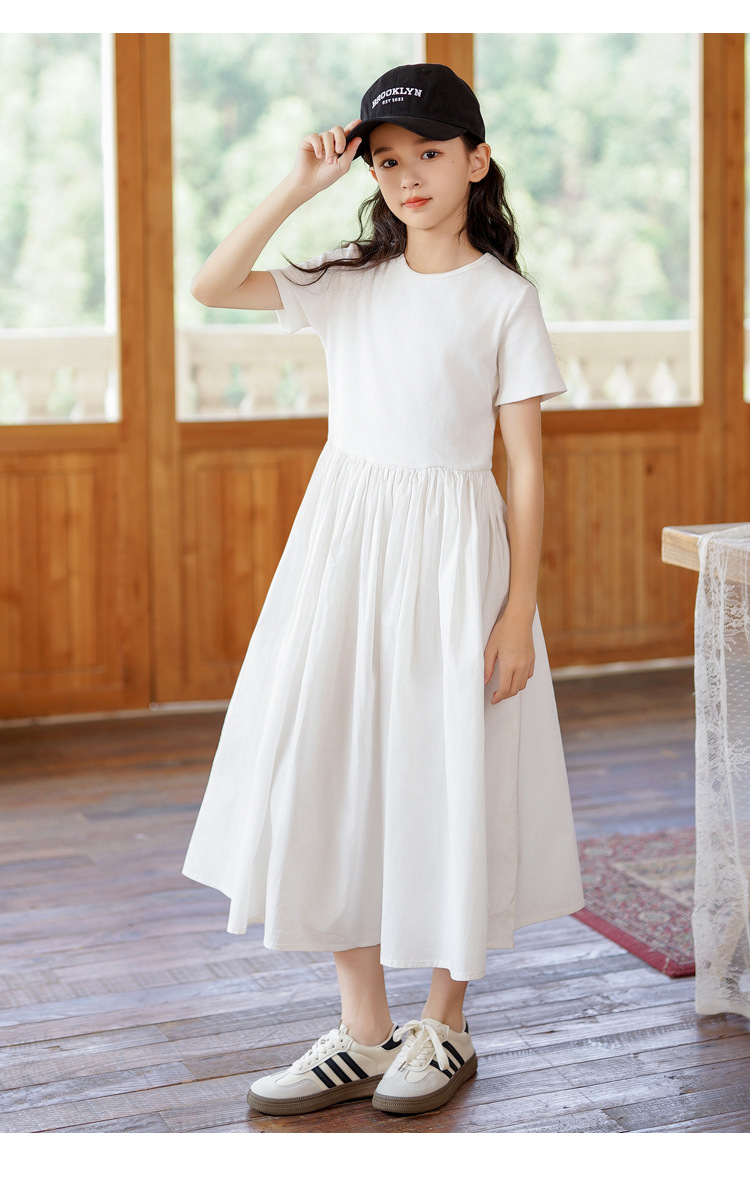 소녀 원피스 여름 민소매 조끼 단색 코튼 스커트 2024 노인을위한 한국 스타일의 새로운 공주 원피스스토어 가기