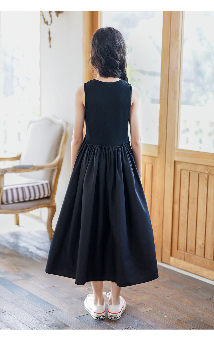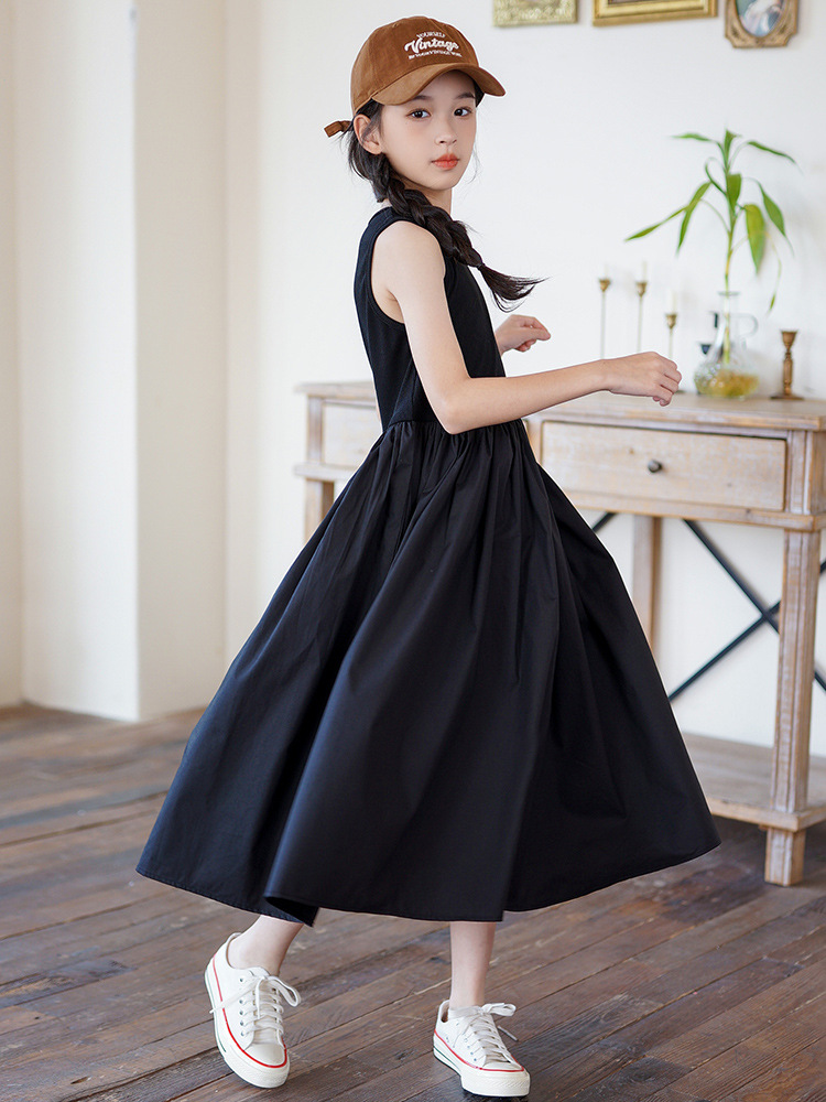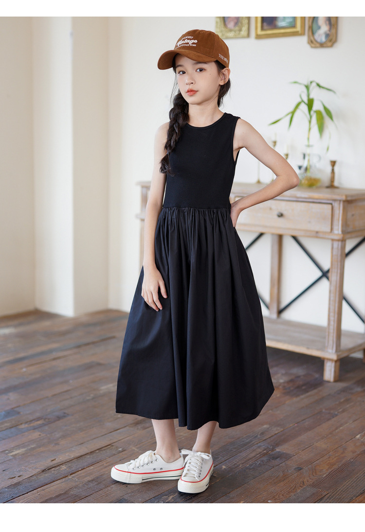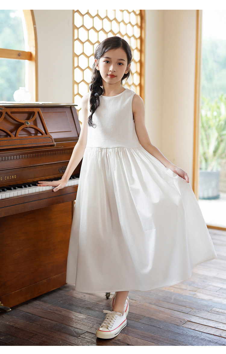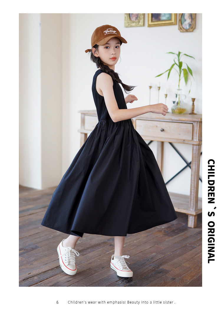 소녀 원피스 여름 민소매 조끼 단색 코튼 스커트 2024 노인을위한 한국 스타일의 새로운 공주 원피스