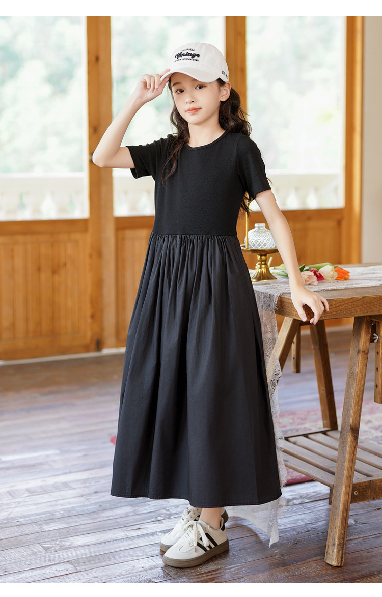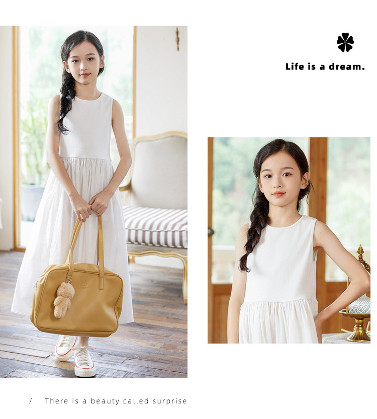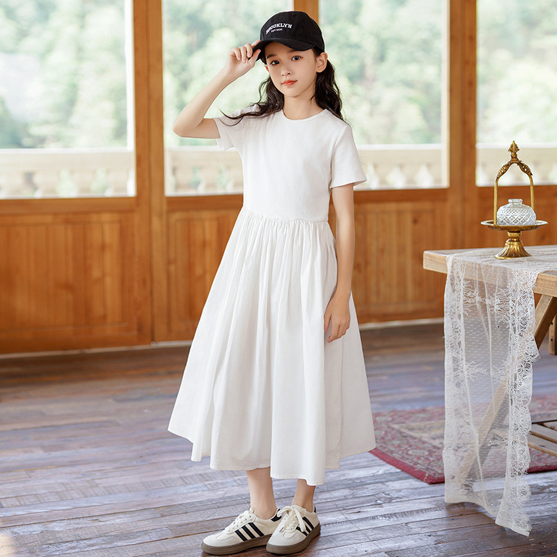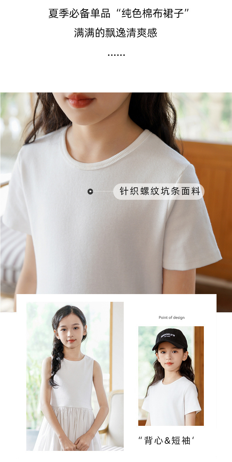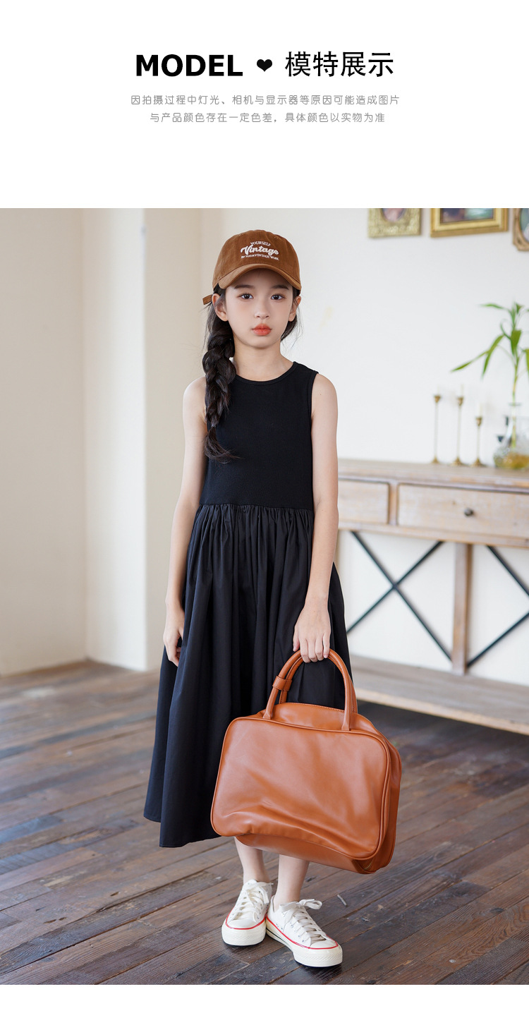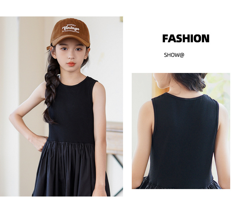 소녀 원피스 여름 민소매 조끼 단색 코튼 스커트 2024 노인을위한 한국 스타일의 새로운 공주 원피스