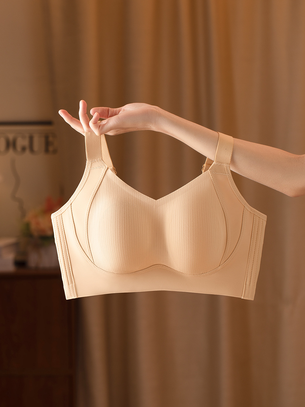 크로스보더 광택 없는 얇은 풀컵 빅사이즈 속옷, 큰 가슴을 작아 보이게 하는 노와이어 스포츠 사이드 수납형 처짐 방지 브라