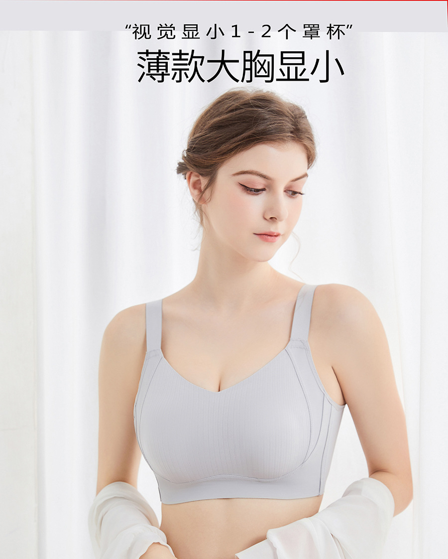 크로스보더 광택 없는 얇은 풀컵 빅사이즈 속옷, 큰 가슴을 작아 보이게 하는 노와이어 스포츠 사이드 수납형 처짐 방지 브라스토어 가기