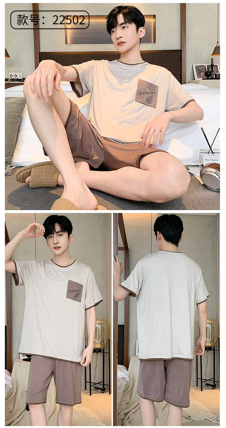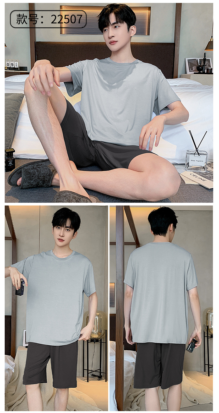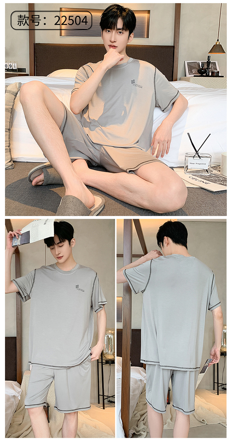 잠옷 남자 2024 새 여름 모달 반팔 반바지 얇은 여름 플러스 사이즈 캐주얼 홈웨어 세트