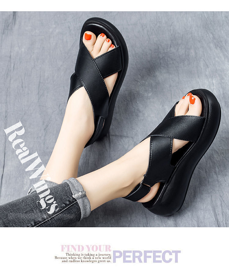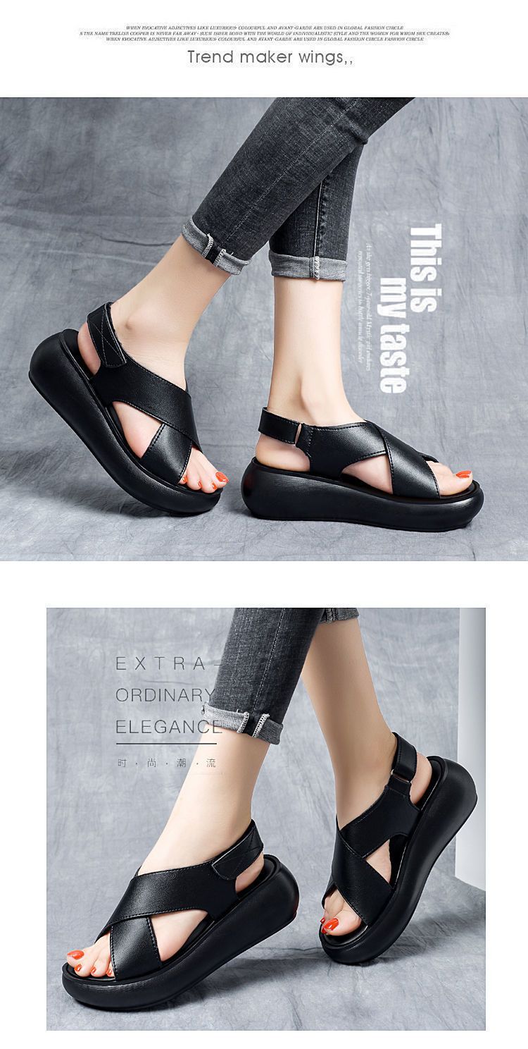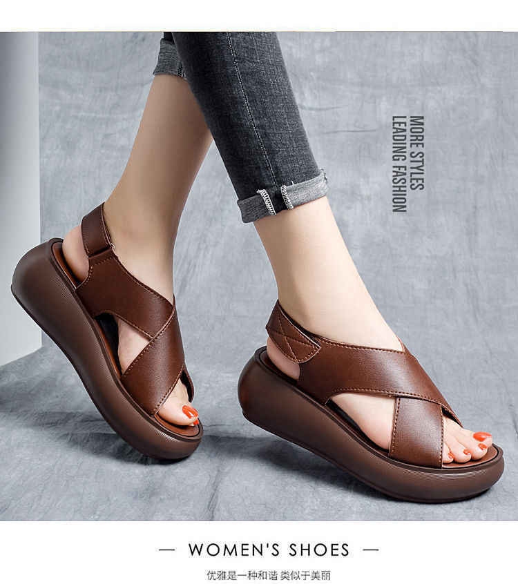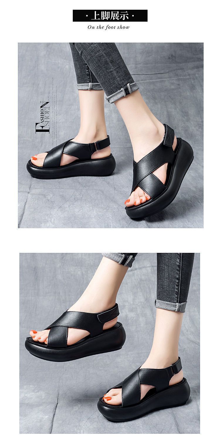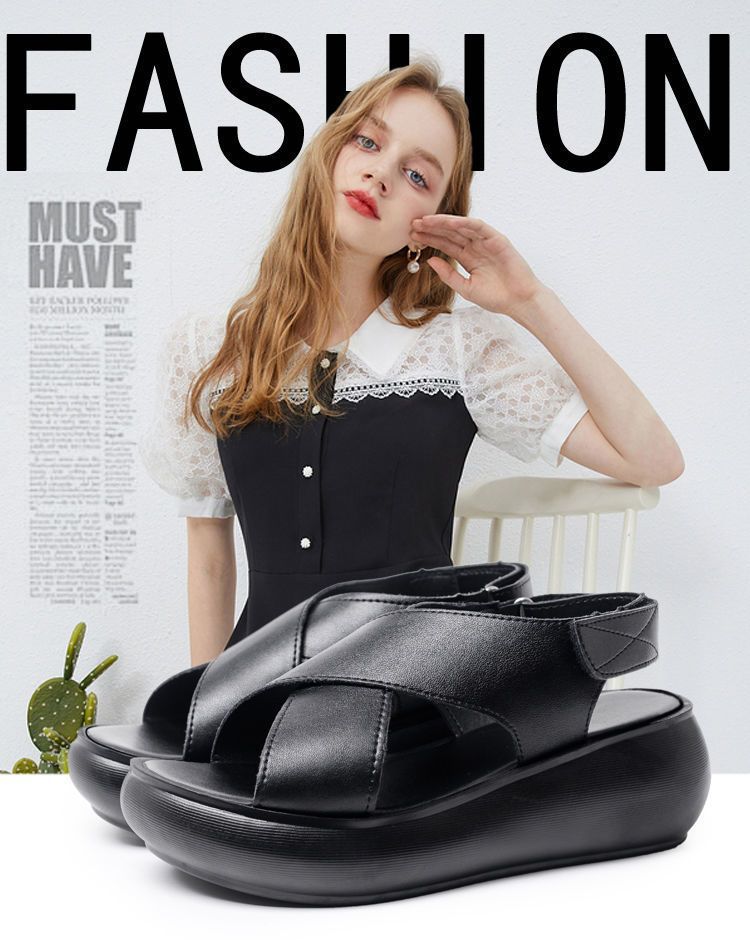 여성을위한 대외 무역 웨지 플랫폼 샌들 2024 여름 새로운 하이힐 오픈 토 올 매치 플랫폼 크로스 샌들스토어 가기