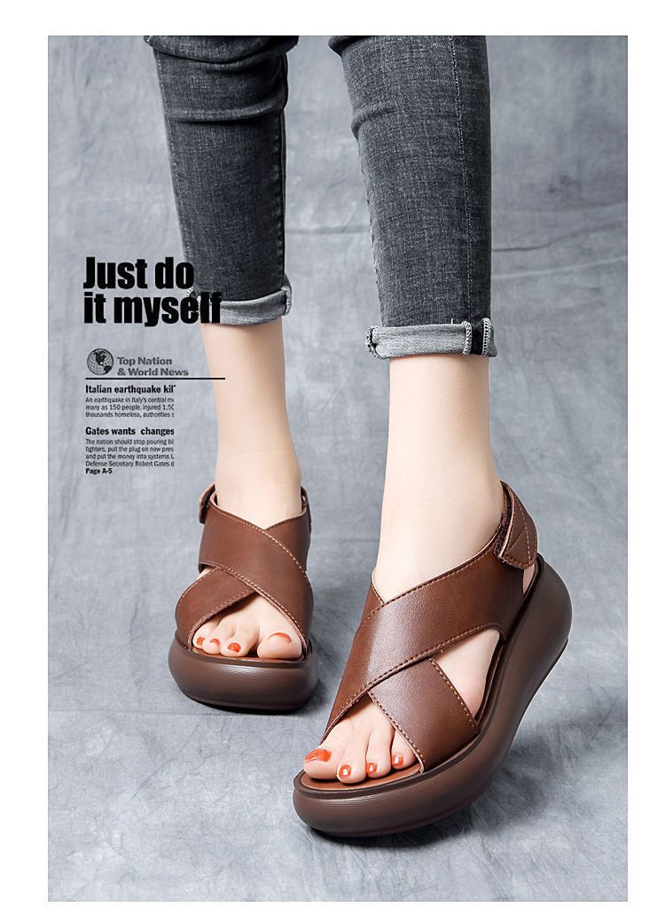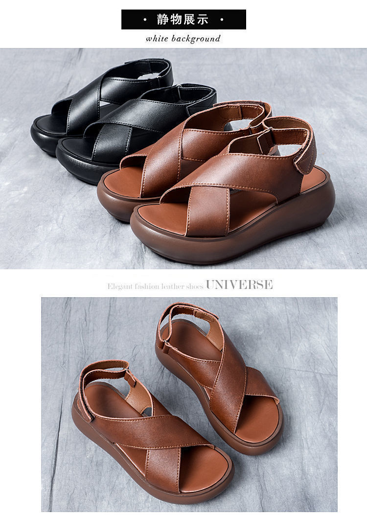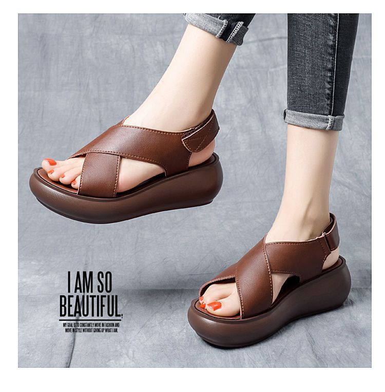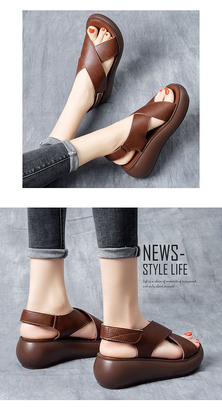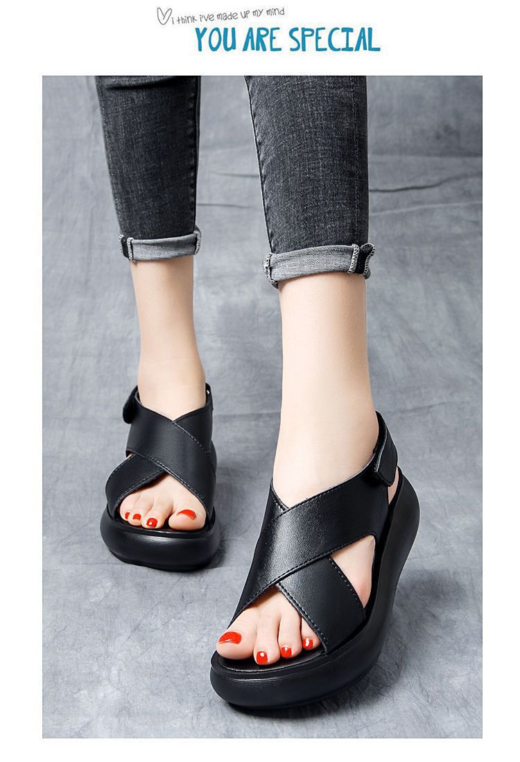 여성을위한 대외 무역 웨지 플랫폼 샌들 2024 여름 새로운 하이힐 오픈 토 올 매치 플랫폼 크로스 샌들스토어 가기