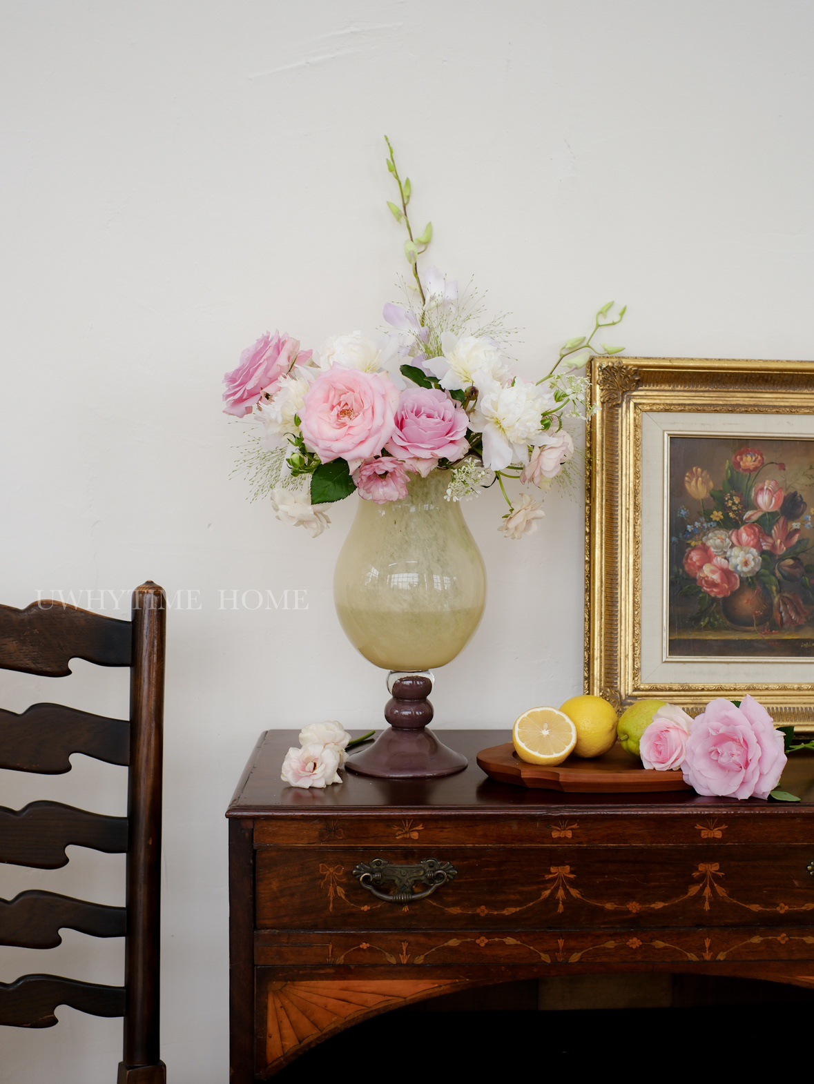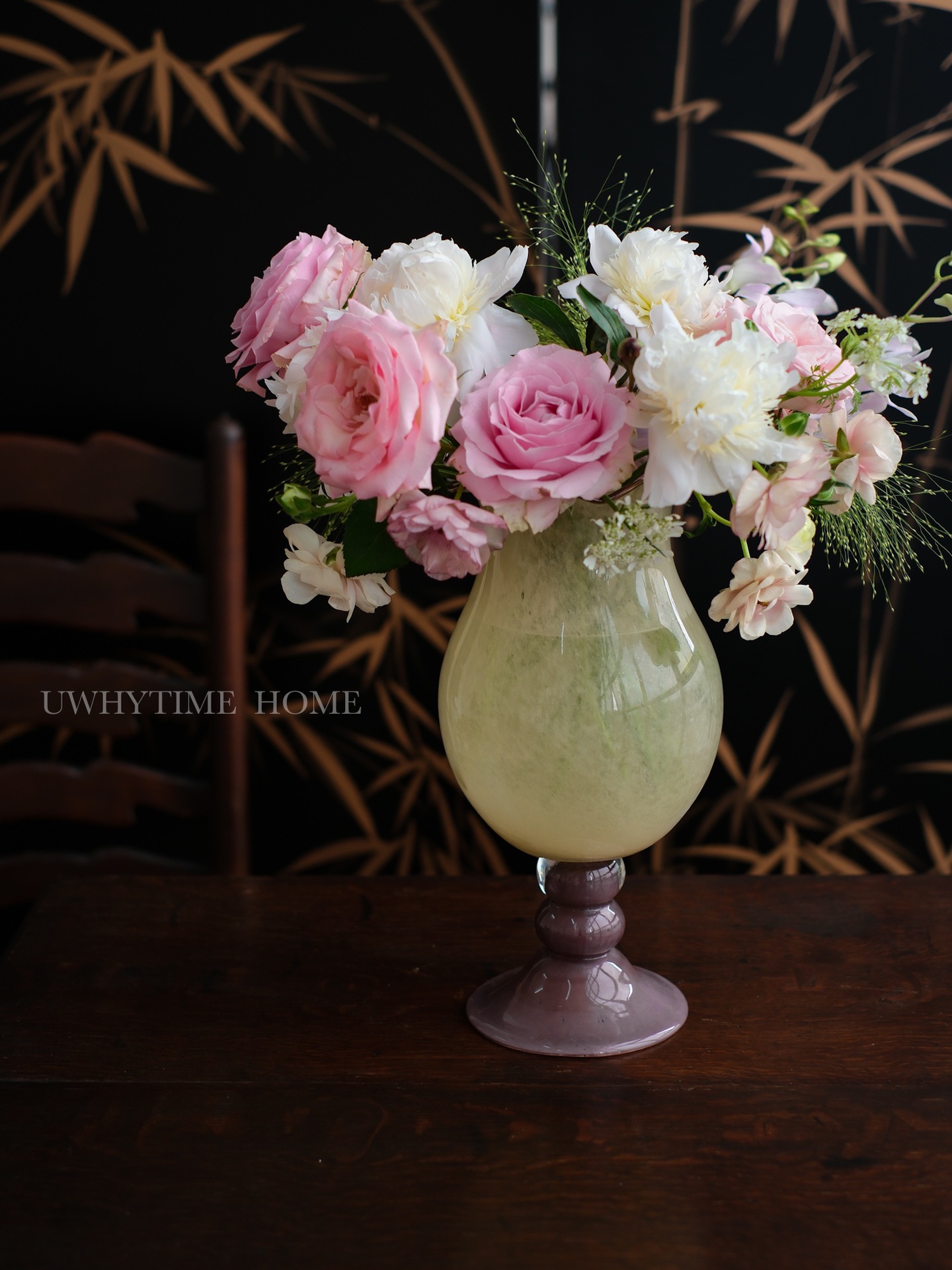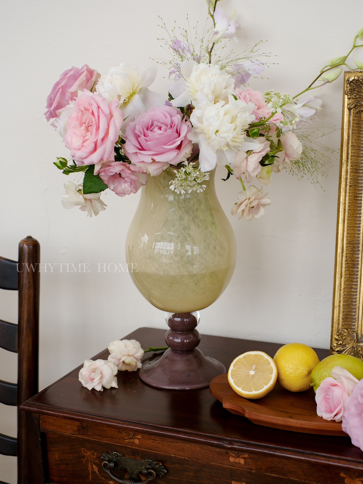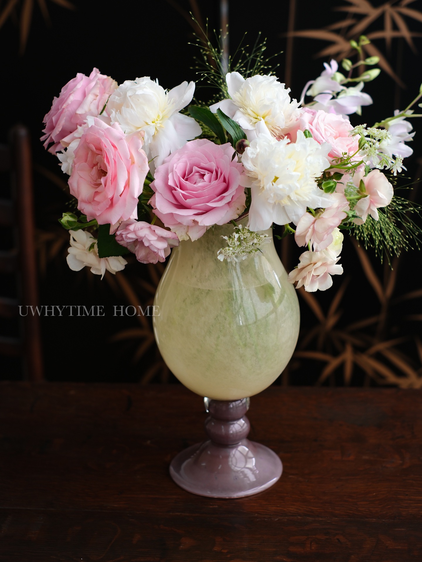 현대 간단한 복고풍 프랑스 우유 옥 색상 일치 백합 수제 유리 꽃병 꽃 장식