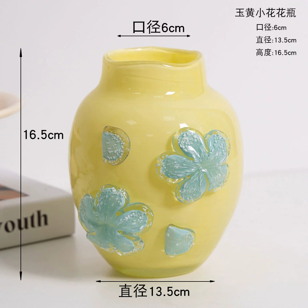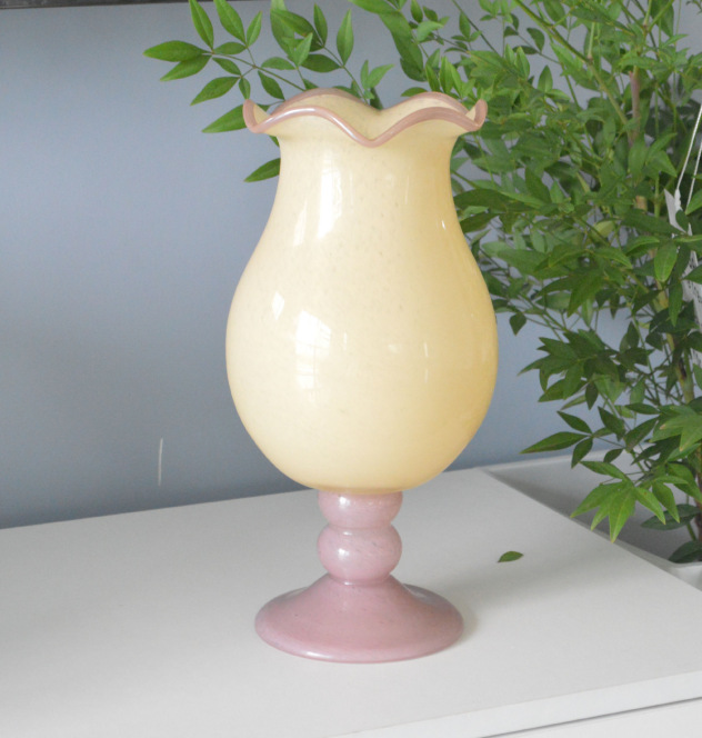 현대 간단한 복고풍 프랑스 우유 옥 색상 일치 백합 수제 유리 꽃병 꽃 장식스토어 가기