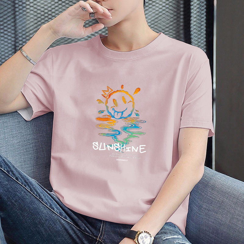 공장 도매 반팔 티셔츠 커플의 여름 트렌디 한 웃는 얼굴 강 인쇄 단색 올 매치 라운드 넥 티셔츠