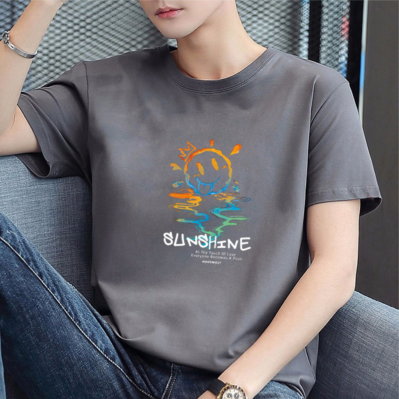 공장 도매 반팔 티셔츠 커플의 여름 트렌디 한 웃는 얼굴 강 인쇄 단색 올 매치 라운드 넥 티셔츠스토어 가기