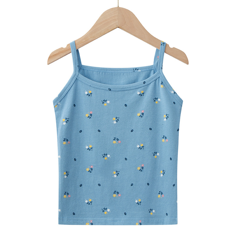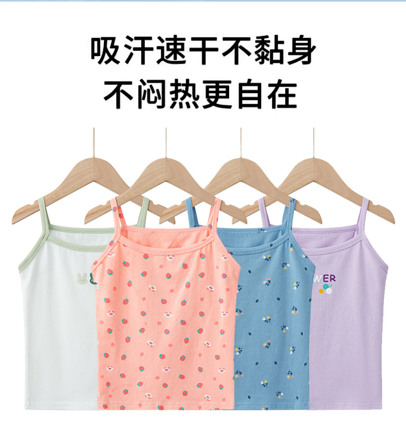 여름 면화 소녀 캐미솔 한국식 어린이 흰색 인쇄 조끼 어린이 소녀 캐미솔 바닥 셔츠스토어 가기