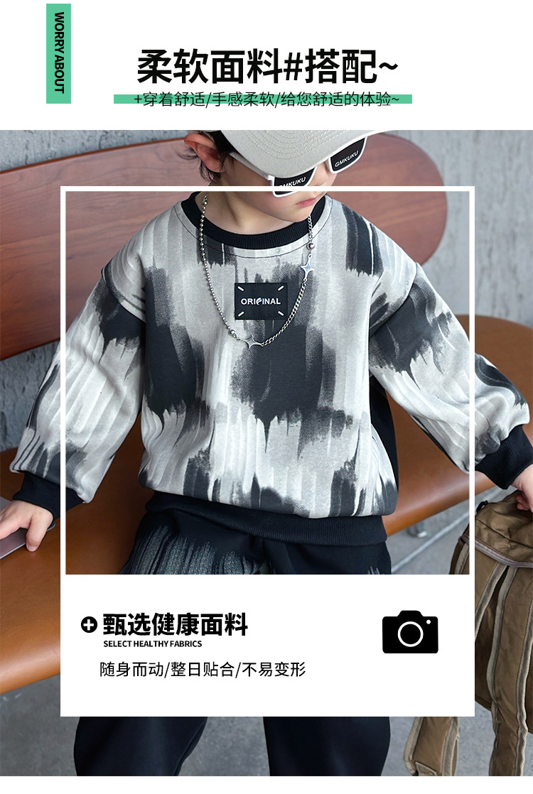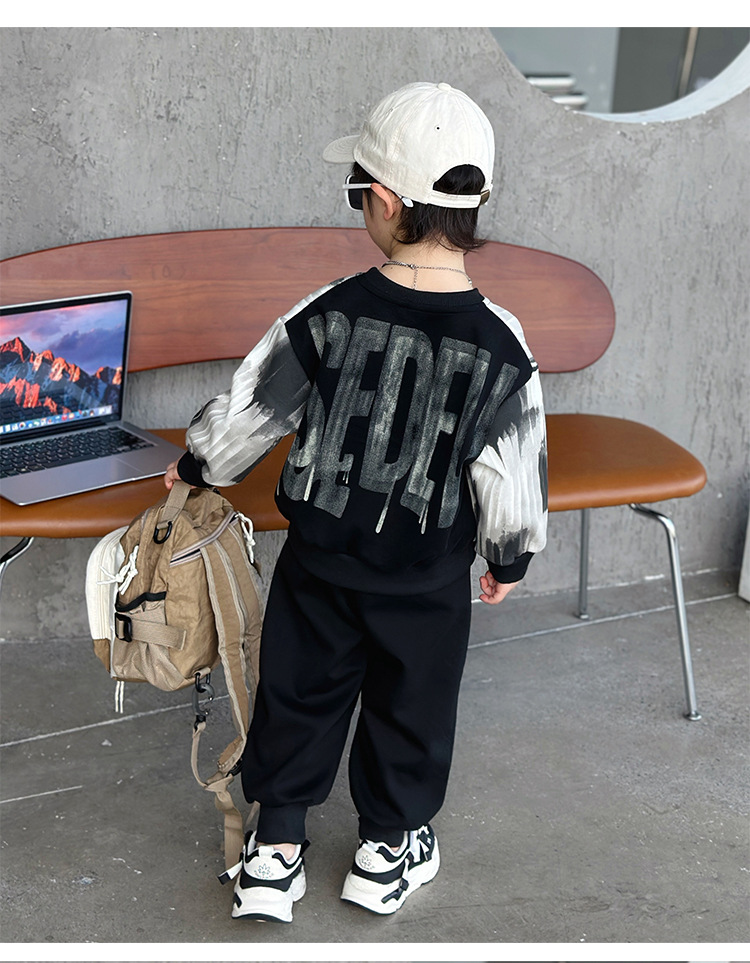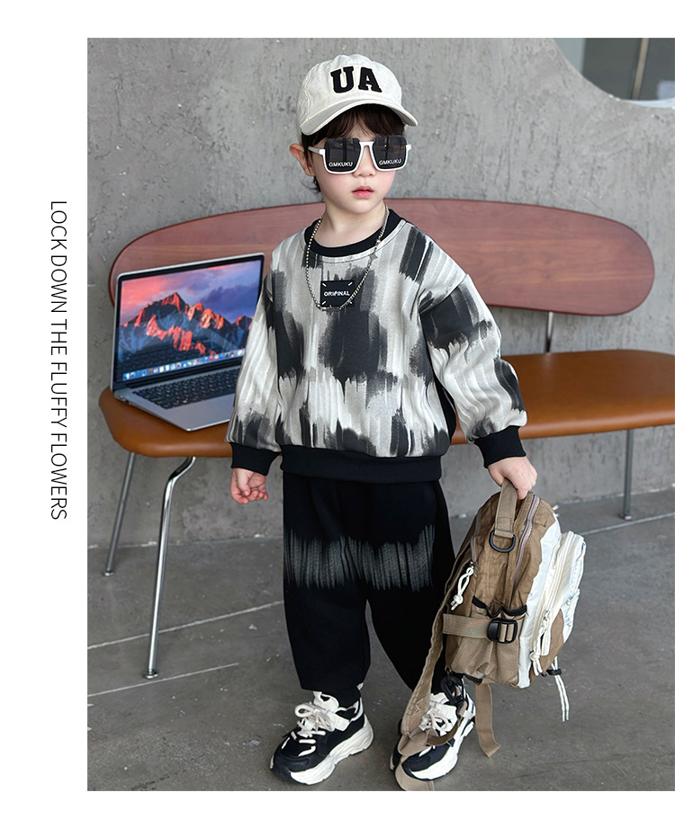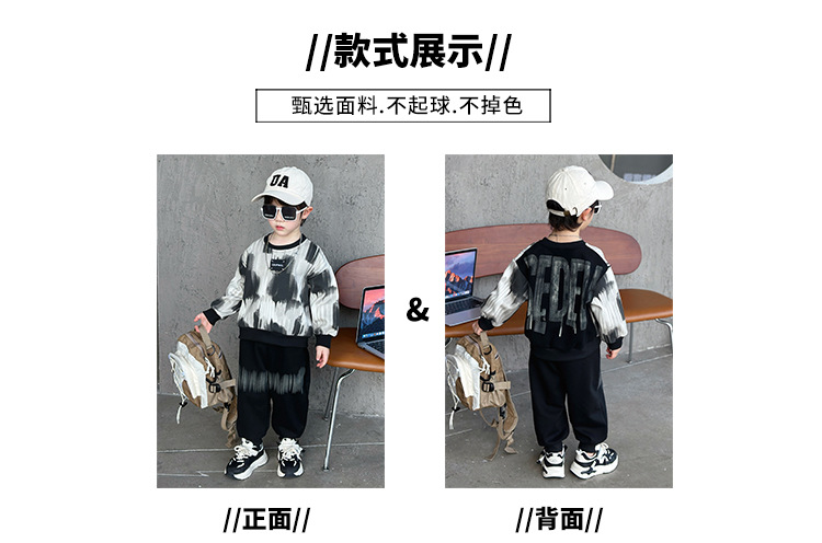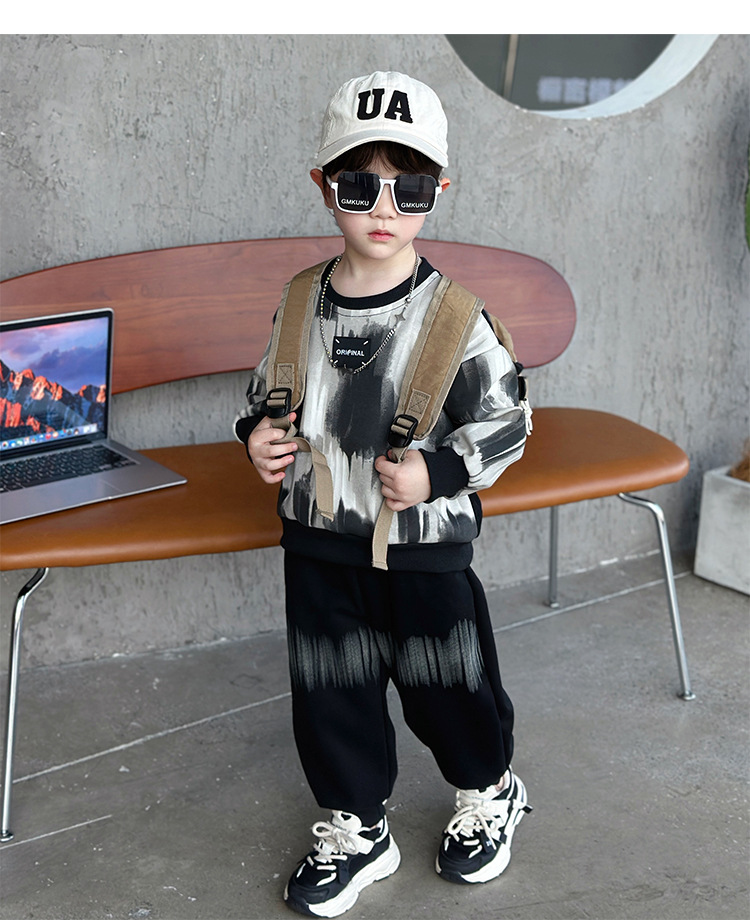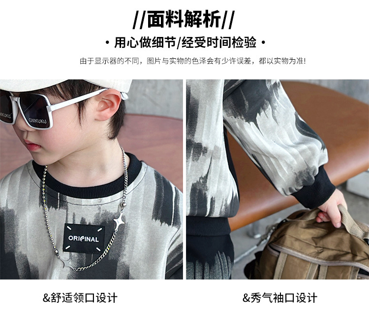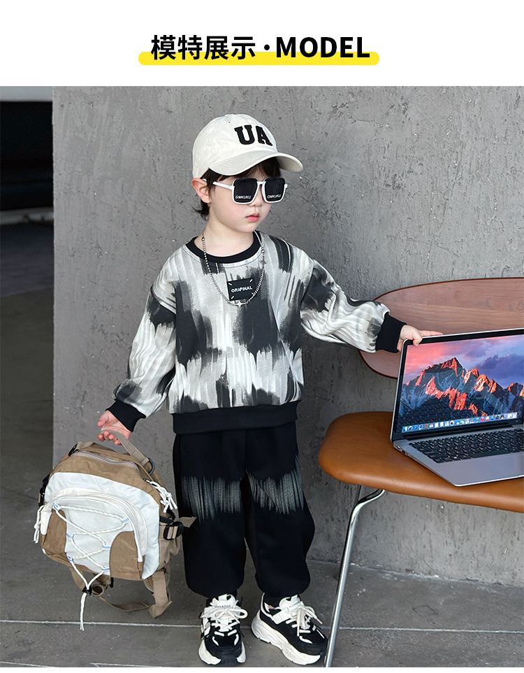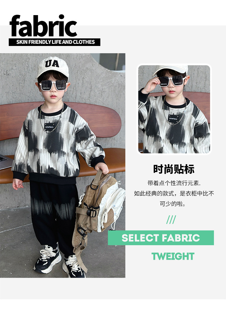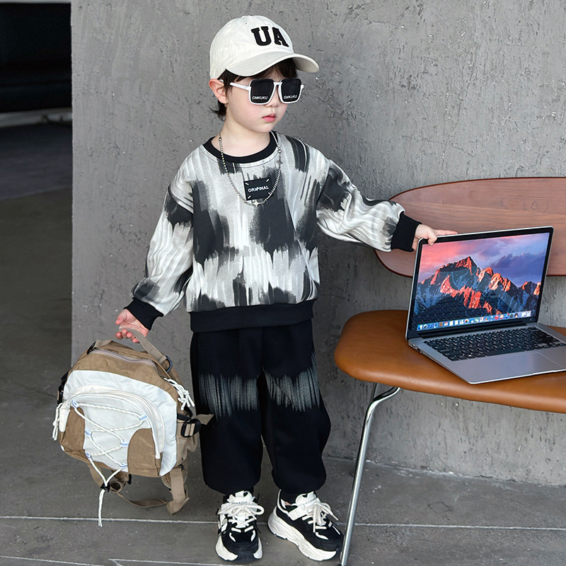 어린이 봄과 가을 넥타이 염색 긴 소매 세트 2024 봄 새로운 서양식 아기 소년 캐주얼 스웨터 투피스 세트 패션스토어 가기