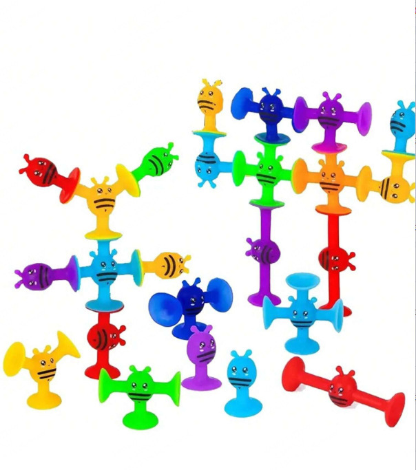 국경 간 뜨거운 판매 귀여운 작은 꿀벌 부드러운 빨판 빌딩 블록 장난감 흡입 음악 스티커 음악 퍼즐 빌딩 블록 DIY 장난감