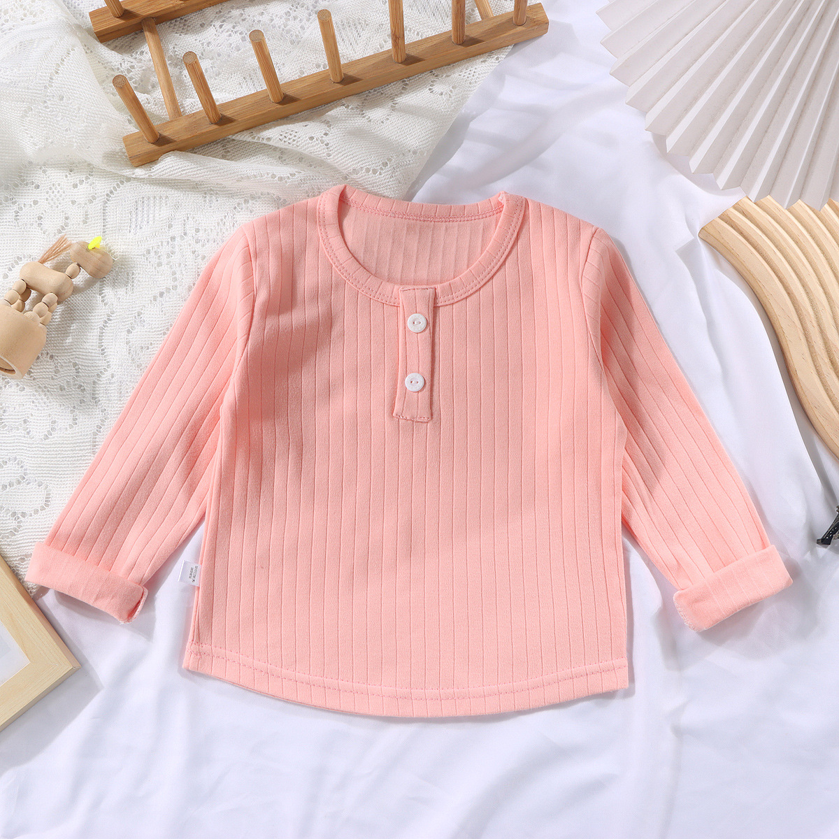 어린이 면화 봄과 가을 긴팔 바닥 셔츠 얇은 소녀의 단색 상단 어린이 한국식 둥근 목 불규칙한 티셔츠스토어 가기