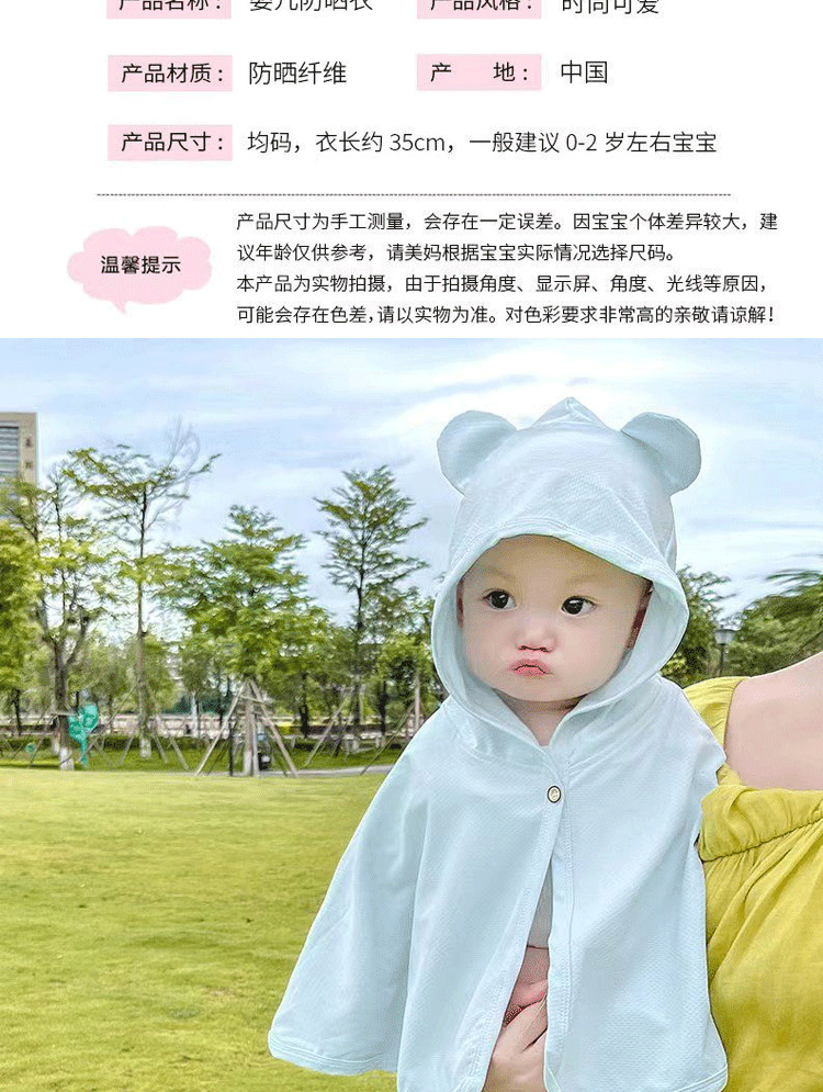 아기 태양 보호 망토 여름 얇은 외부 착용 통기성 태양 보호 의류 아기 슈퍼 귀여운 새로운 망토 유아 코트