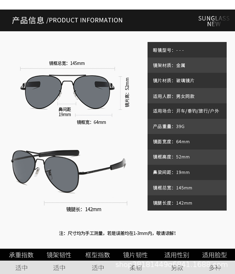 새로운 유럽과 미국의 금속 선글라스 대형 프레임 스퀘어 더블 빔 유리 렌즈 선글라스 남성과 여성 트렌디 한 선글라스스토어 가기