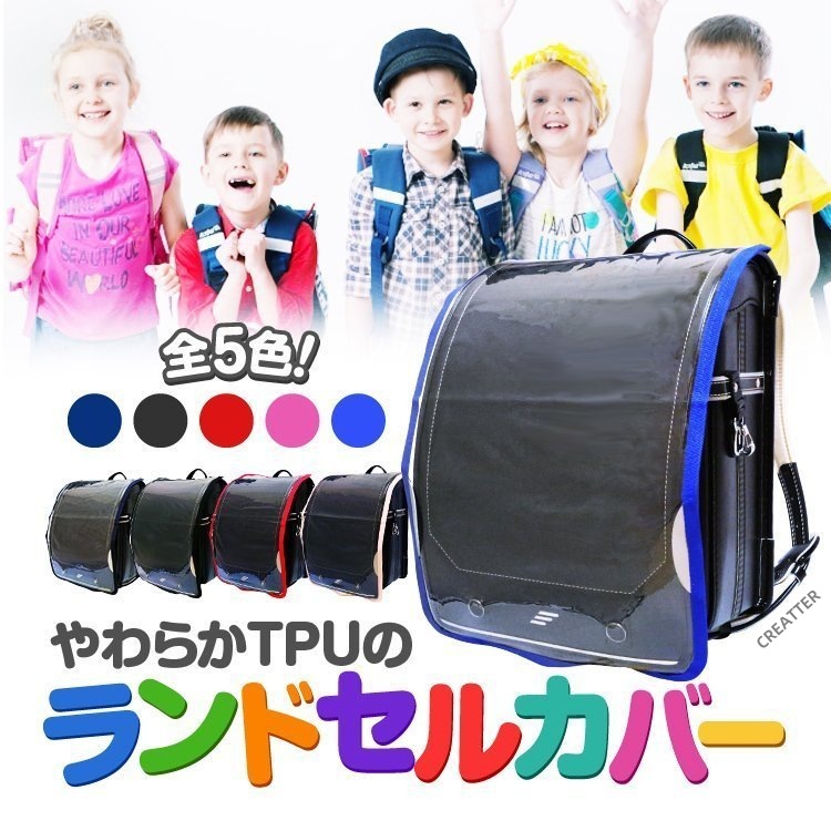 ◆ランドセルカバー 透明クリアタイプ 全5色 青/紺/黒/赤/桃 反射材付き 軽量 シンプル 保護カバー やわらかクリアなTPU素材 傷や汚れをガード 雨 雪対策 男の子 女の子