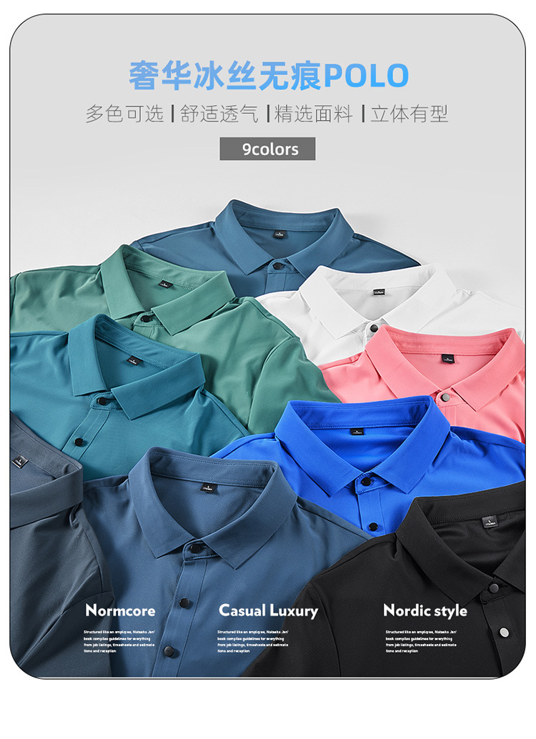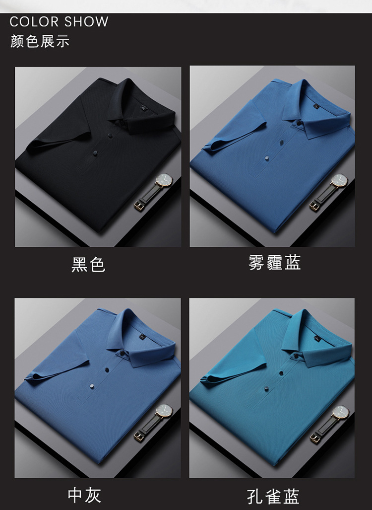 아이스 실크 짧은 소매 폴로 남자의 2024 새로운 그룹 작업 티셔츠 짧은 소매 사업 아이스 실크 추적없는 폴로 셔츠