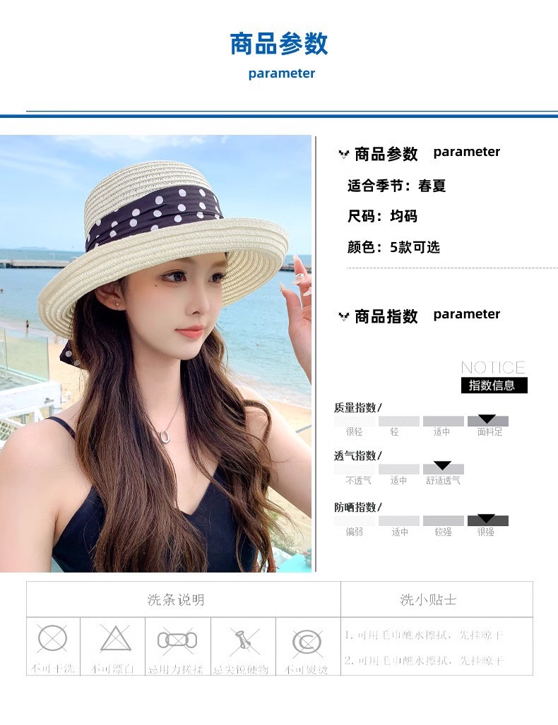 프랑스 우아한 컬링 분지 모자 폴카 도트 나비 태양 방지 밀짚 모자 여성 여름 해변 휴가 해변 태양 방지 모자스토어 가기