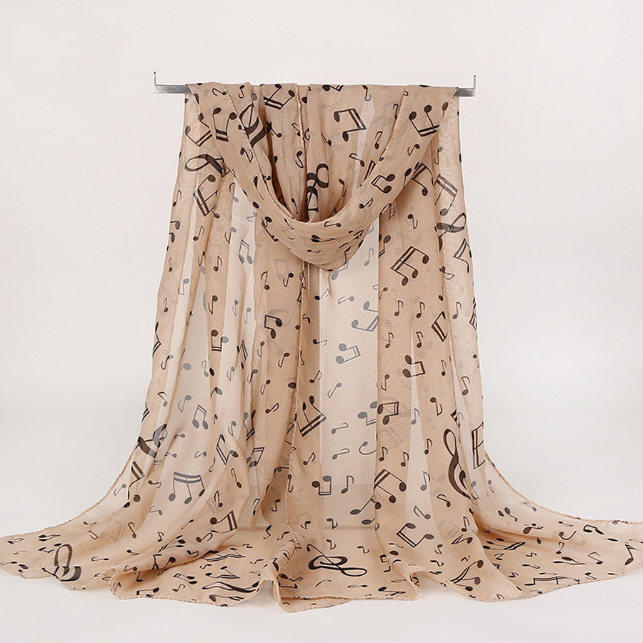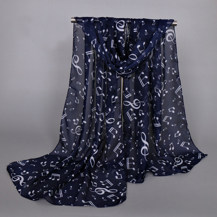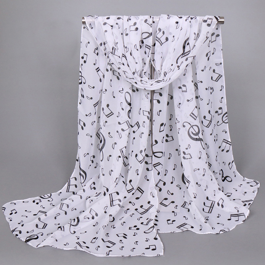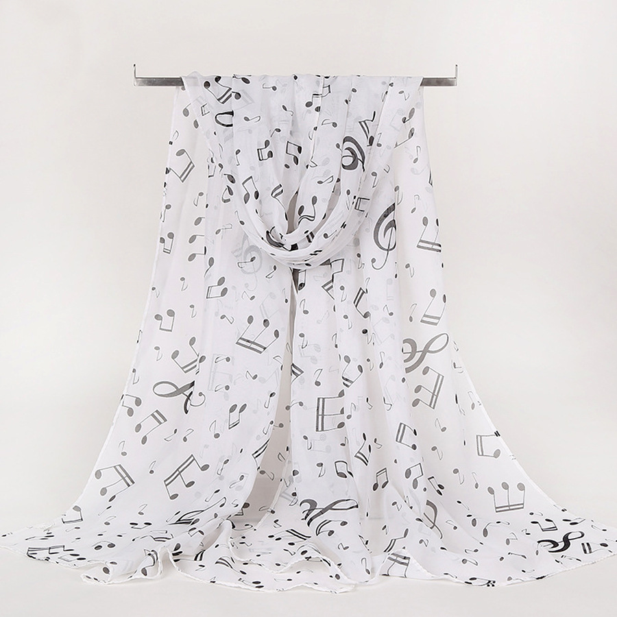 유럽과 미국 스타일의 음악 기호 숙녀 긴 노트 쉬폰 스카프 도매 숙녀 인쇄 작은 스카프