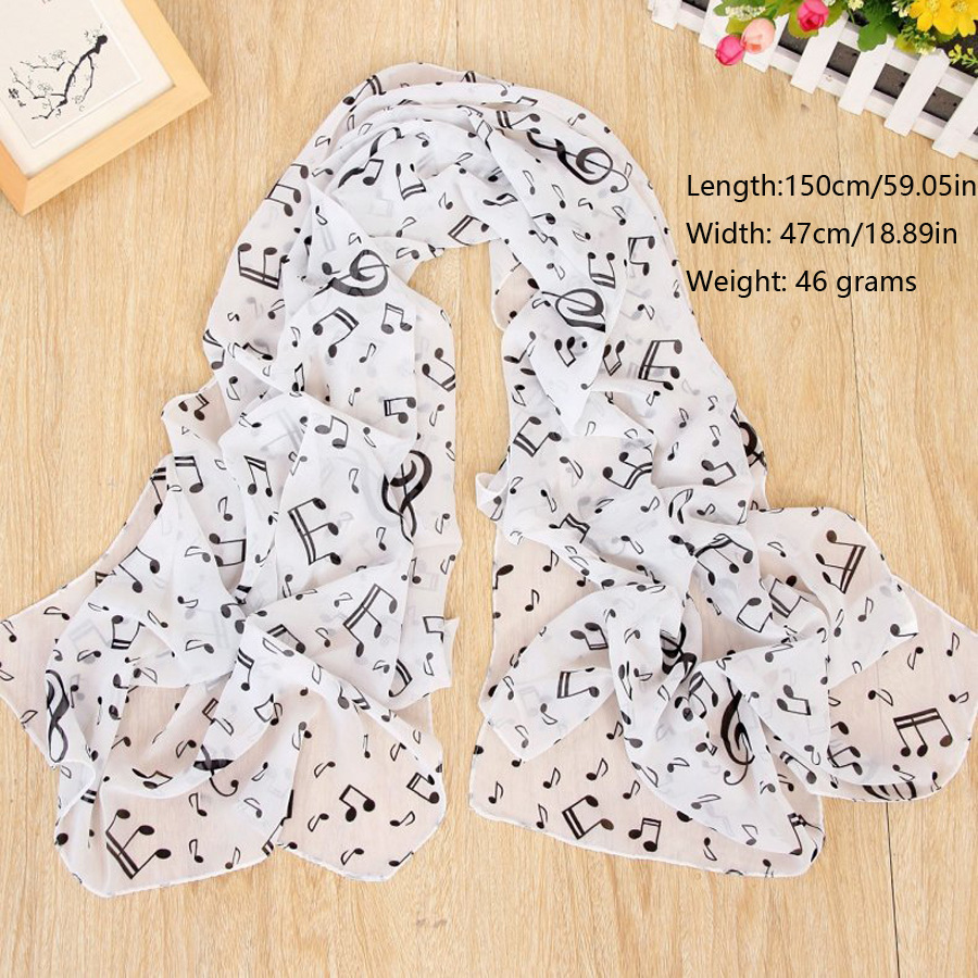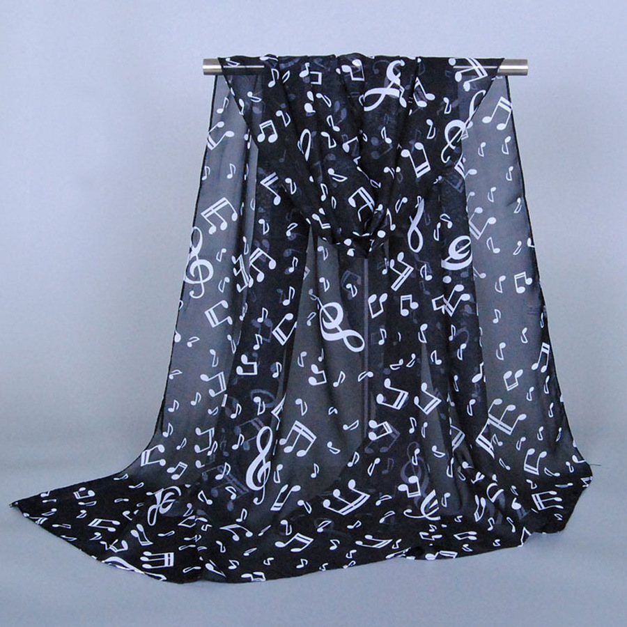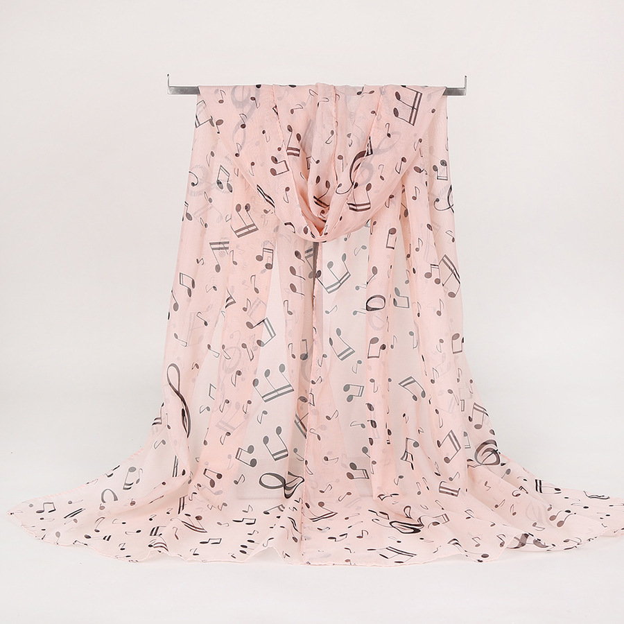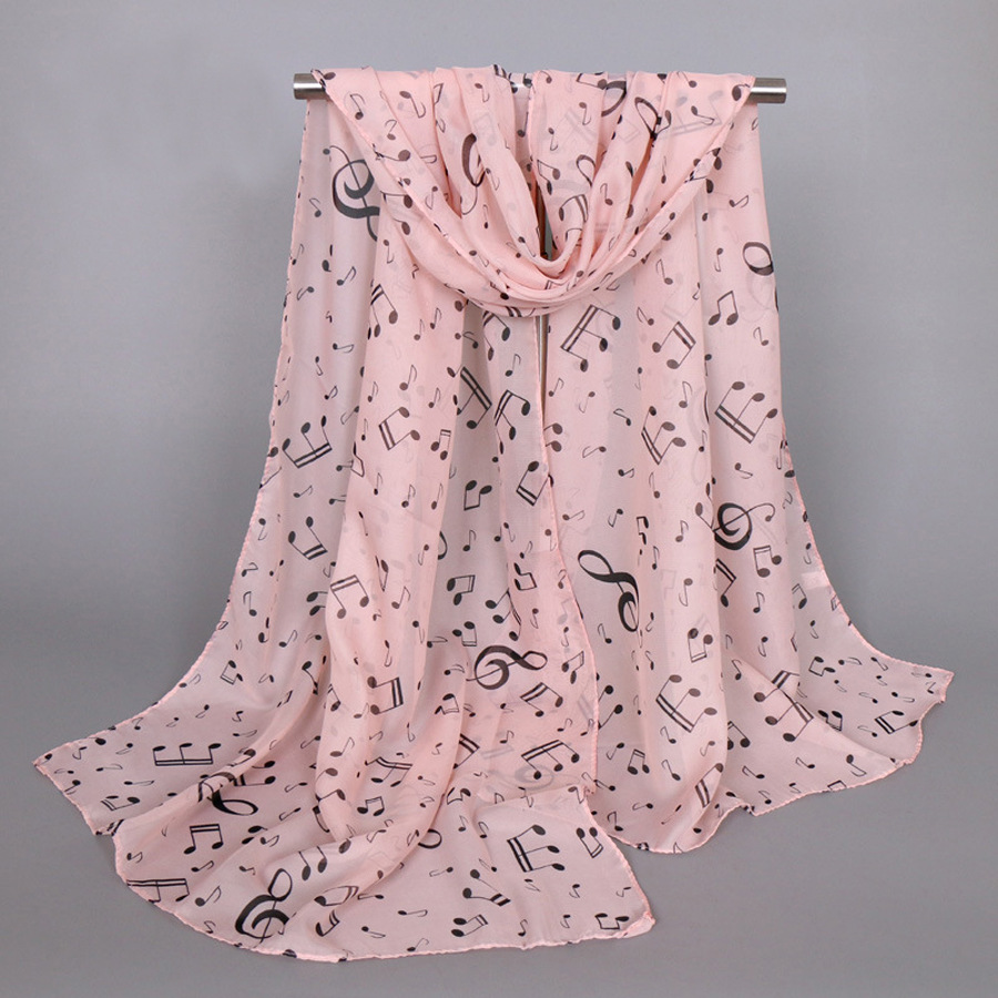 유럽과 미국 스타일의 음악 기호 숙녀 긴 노트 쉬폰 스카프 도매 숙녀 인쇄 작은 스카프