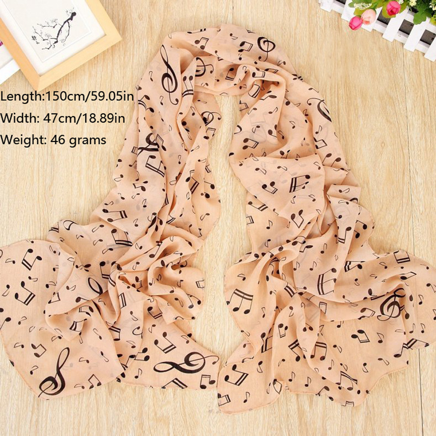 유럽과 미국 스타일의 음악 기호 숙녀 긴 노트 쉬폰 스카프 도매 숙녀 인쇄 작은 스카프스토어 가기