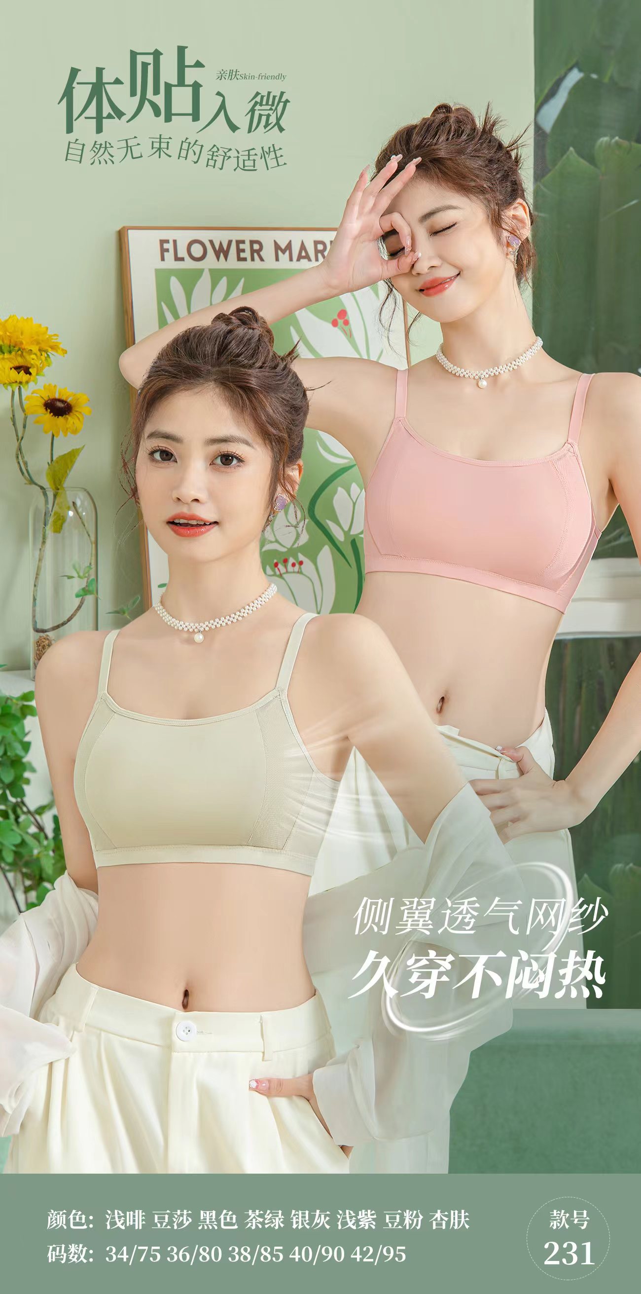 Qiaozifang 231 통기성 면 피부 친화적인면 튜브 탑 속옷 스포츠 소녀 브래지어 스틸 링없이 얇은스토어 가기