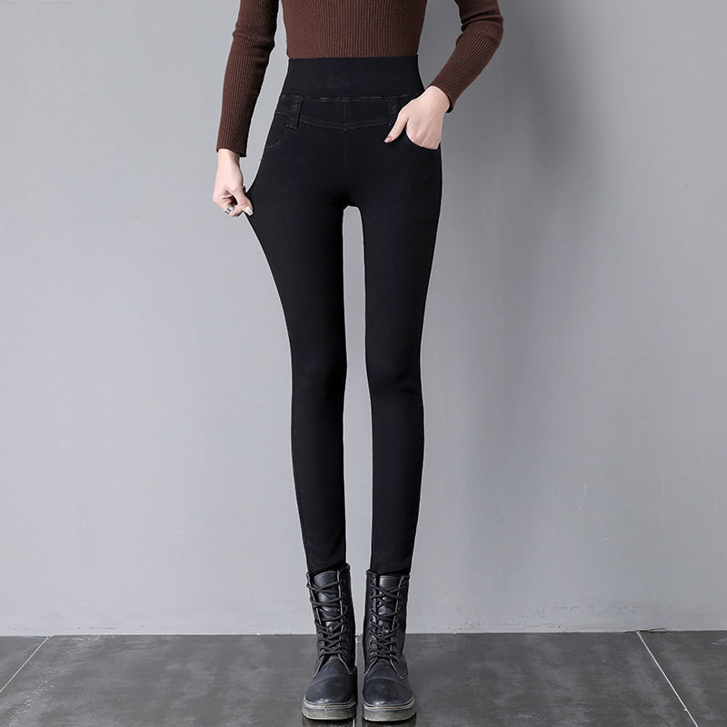 2025 봄 새로운 하이 웨이스트 블랙 청바지 여성 탄성 허리 스키니 슬리밍 바지 코튼 스트레치 청바지스토어 가기
