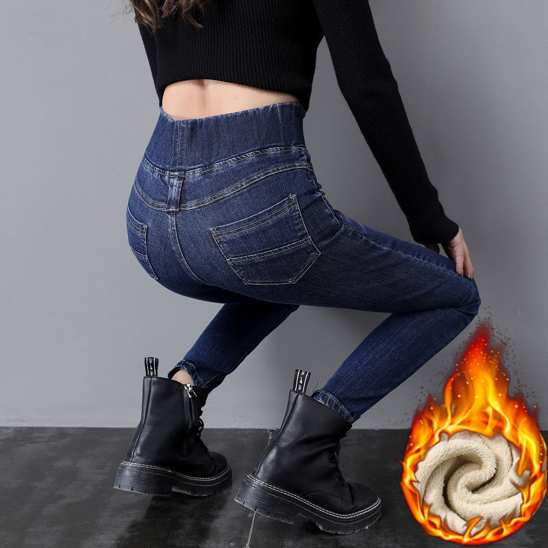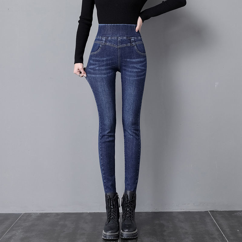 2025 봄 새로운 하이 웨이스트 블랙 청바지 여성 탄성 허리 스키니 슬리밍 바지 코튼 스트레치 청바지