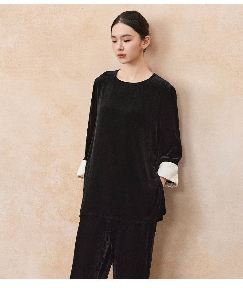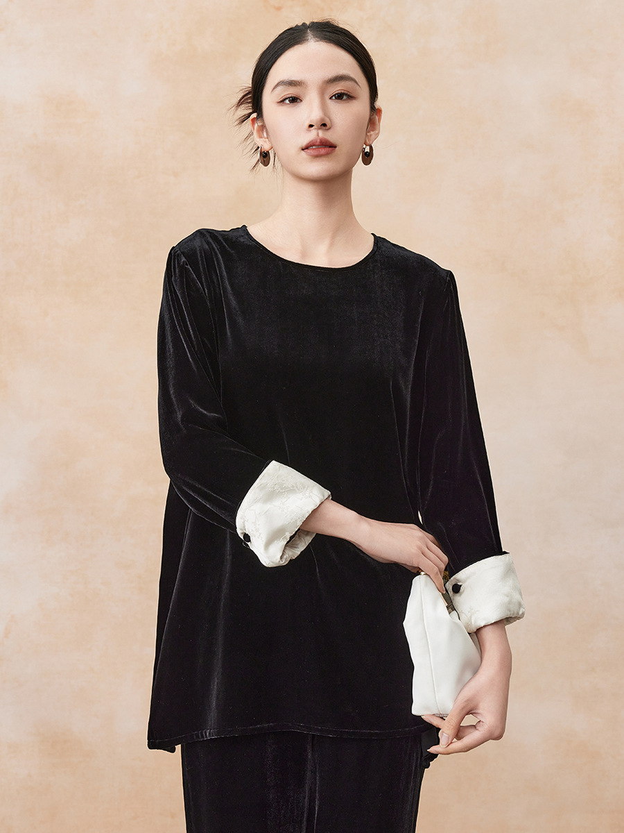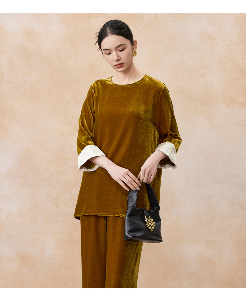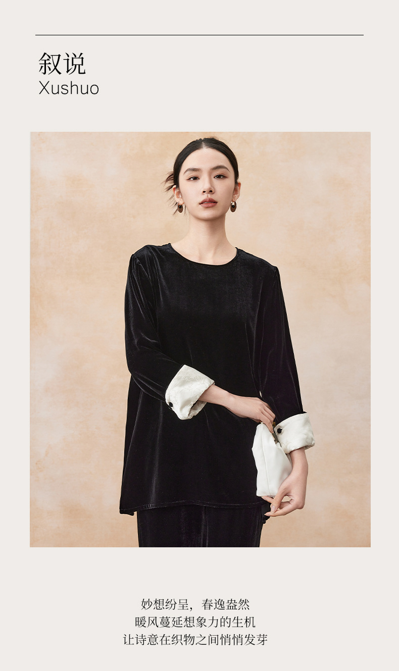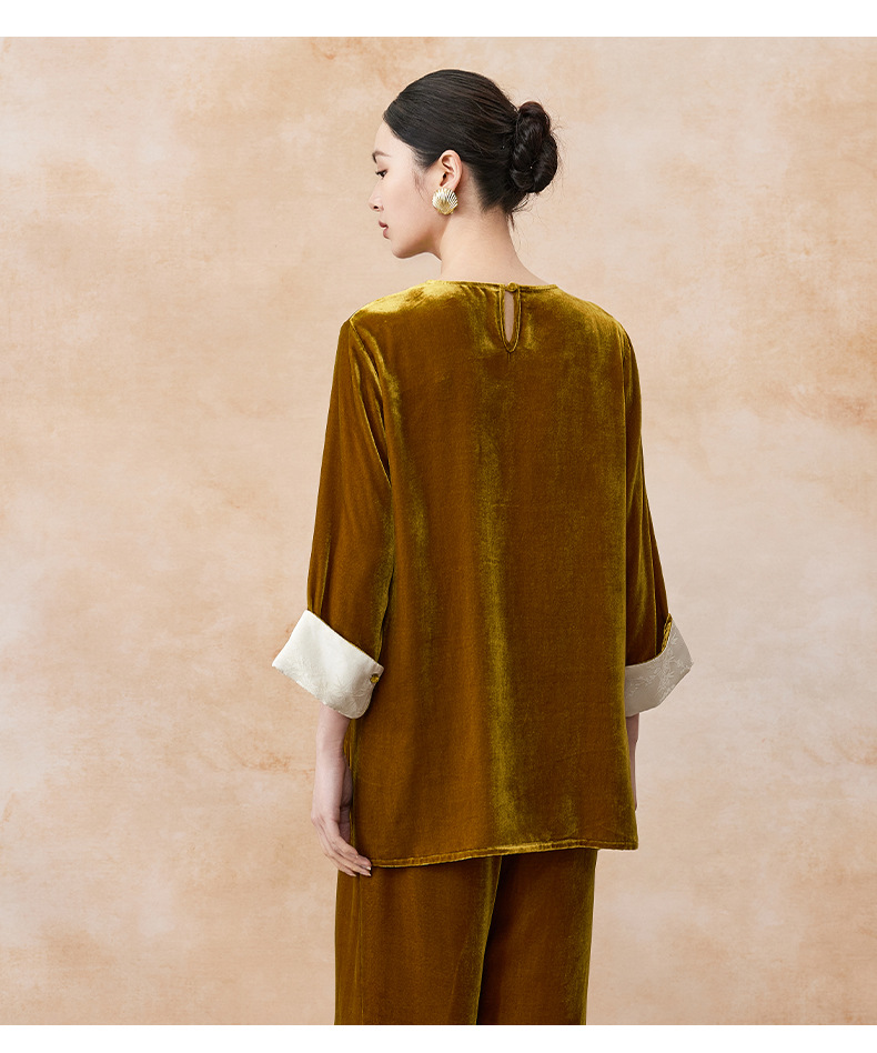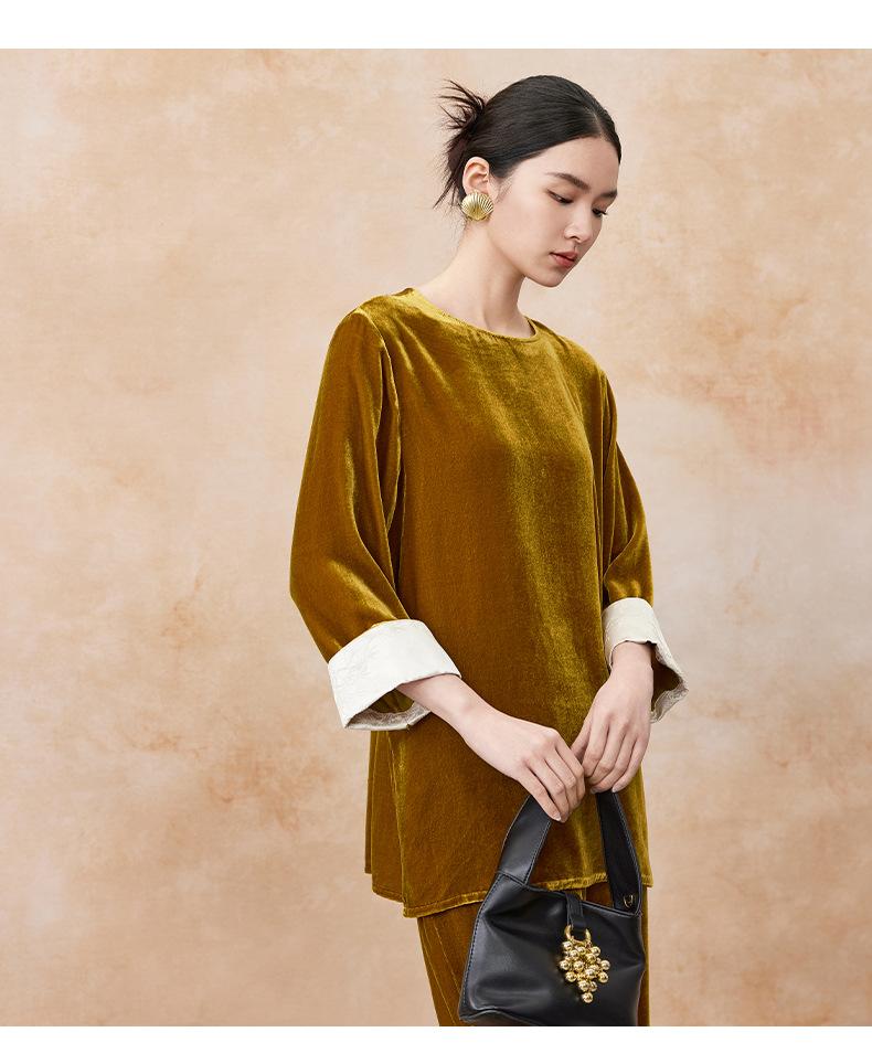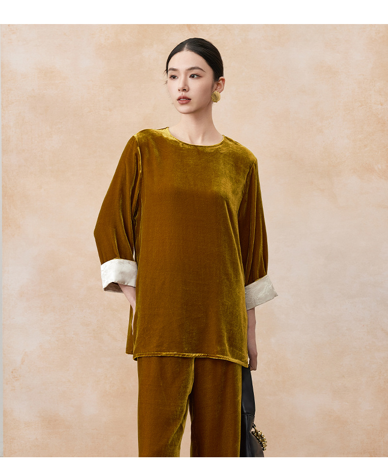 봄 신상품 중국풍 실크 벨벳 상의 캐주얼 패션 레트로 셔츠 뽕나무 실크 레트로 여성용 상의 도매스토어 가기