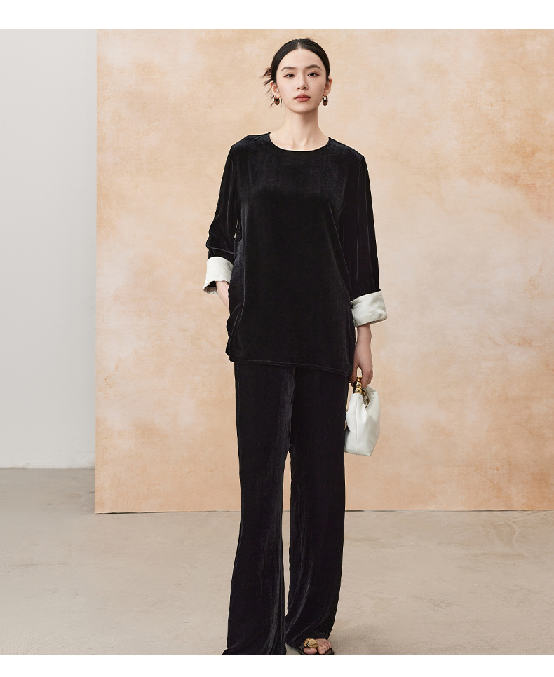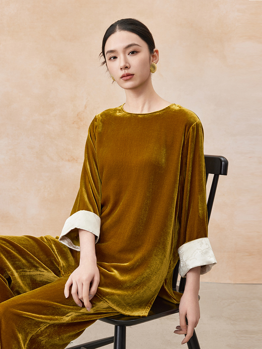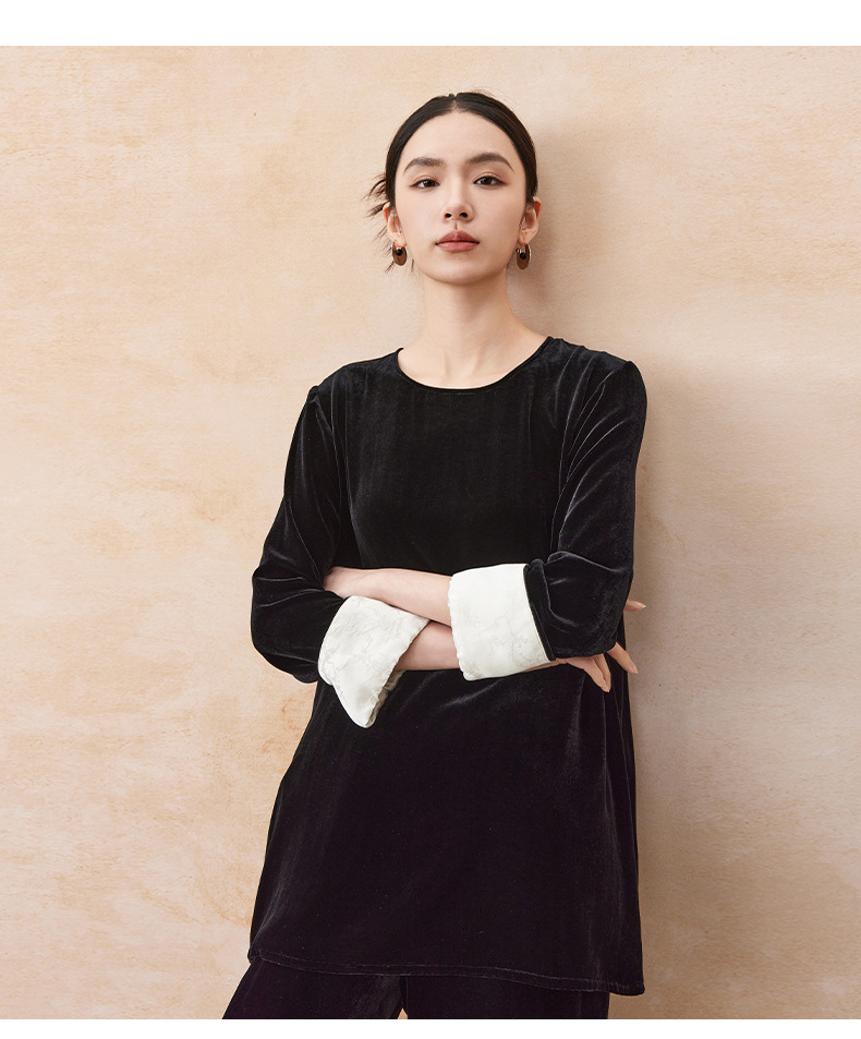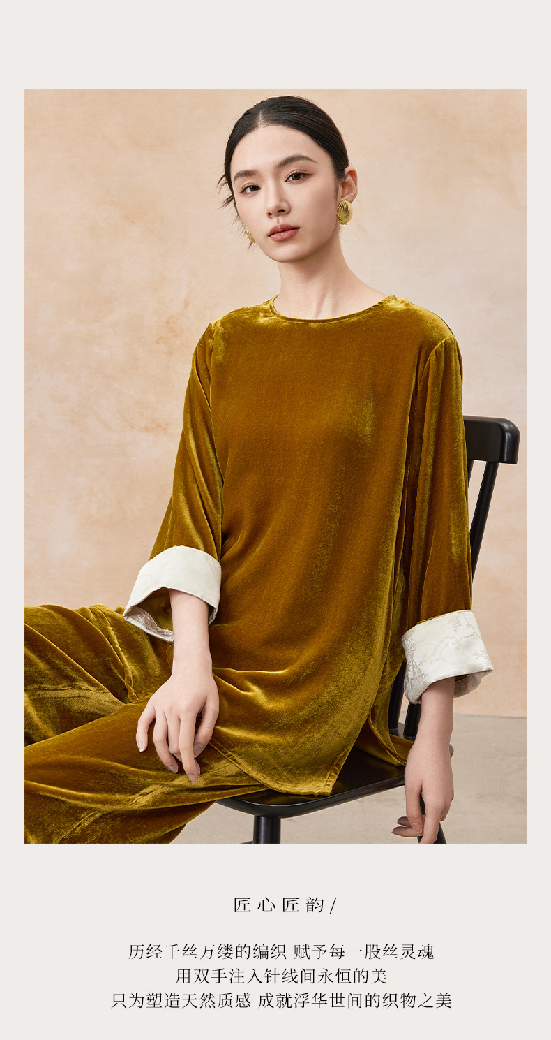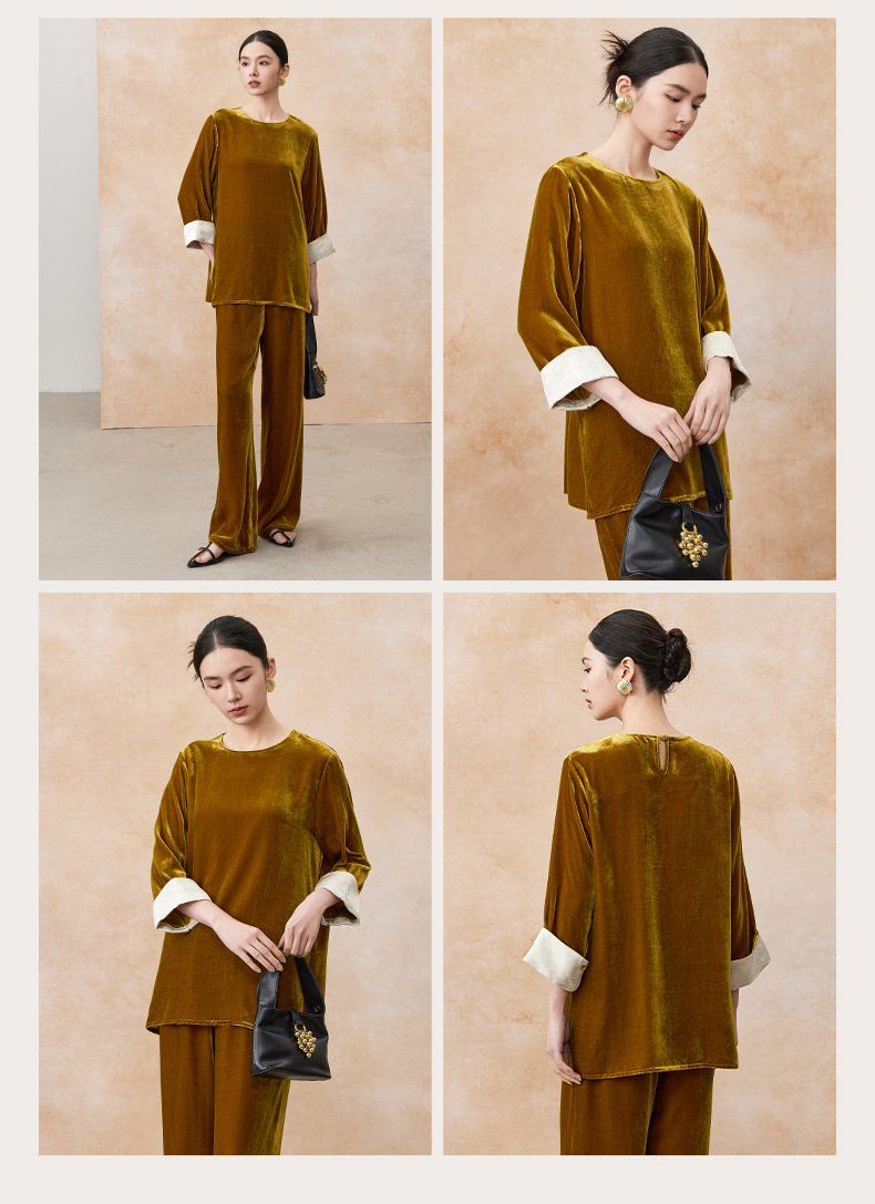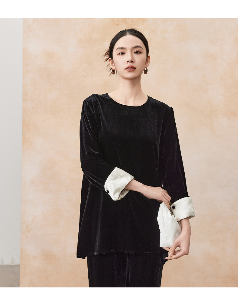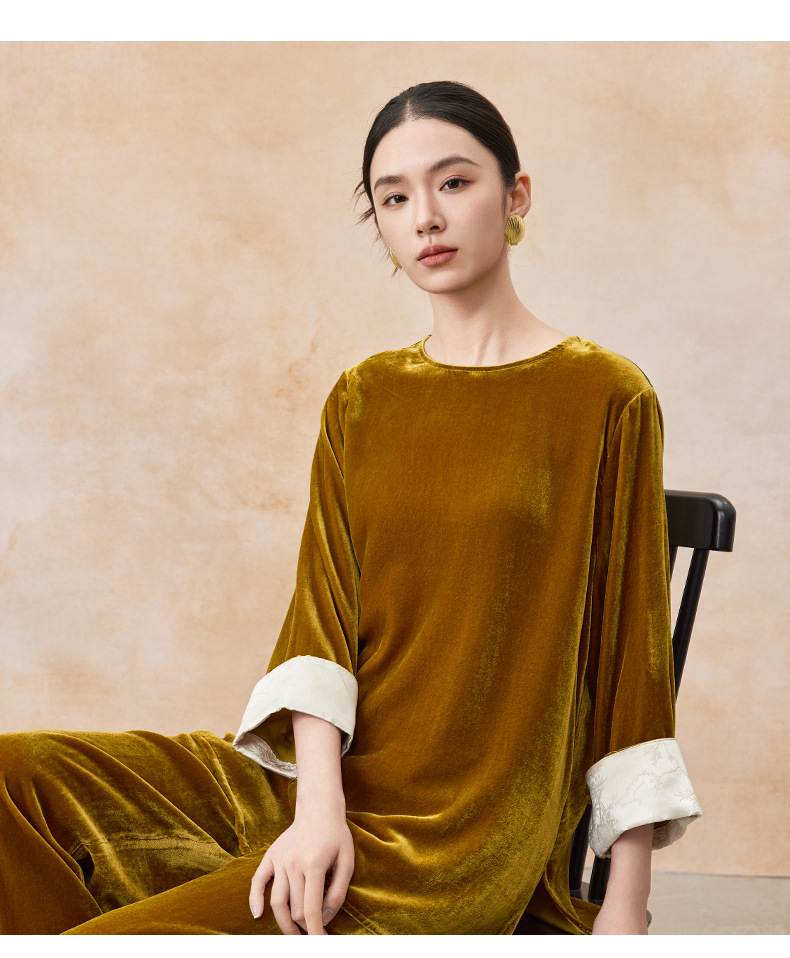 봄 신상품 중국풍 실크 벨벳 상의 캐주얼 패션 레트로 셔츠 뽕나무 실크 레트로 여성용 상의 도매스토어 가기