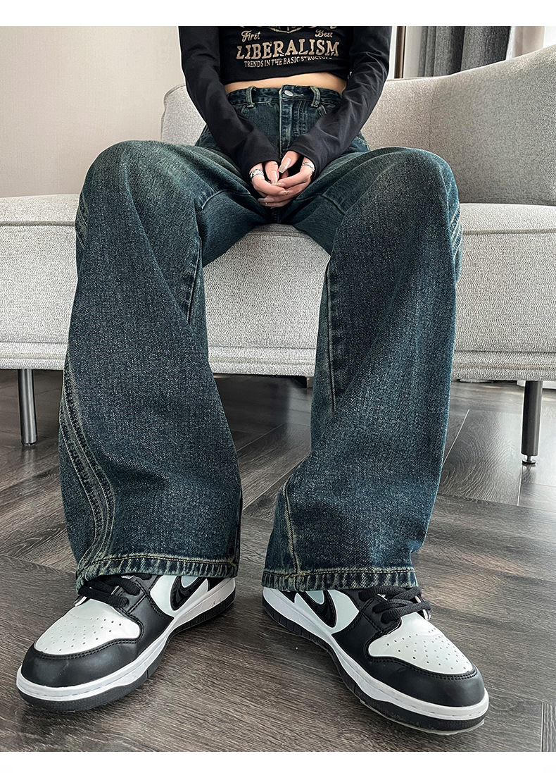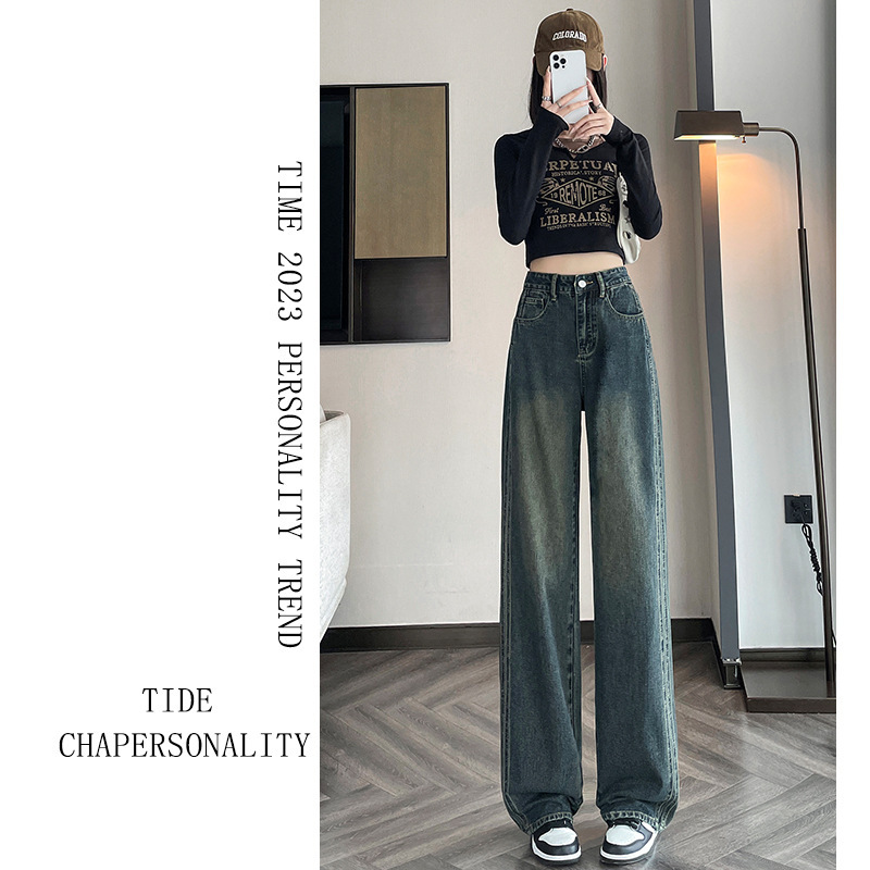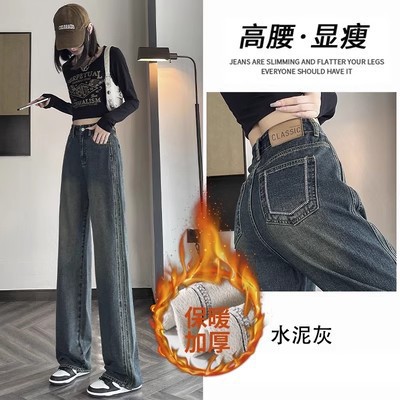 시멘트 그레이 좁은 핏 스트레이트 진 여성용 2025 가을 겨울 하이웨이스트 루즈핏 슬림핏 소녀용 드레이프 와이드 팬츠스토어 가기