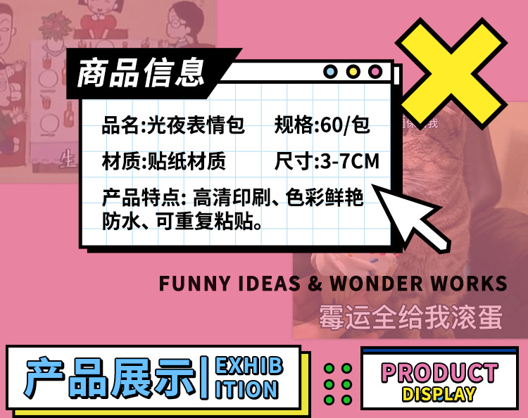 60 가벼운 밤 표현 가방 스티커 만화 귀여운 창조적 인 장식 노트북 ipai 손 계정 DIY 스티커 도매