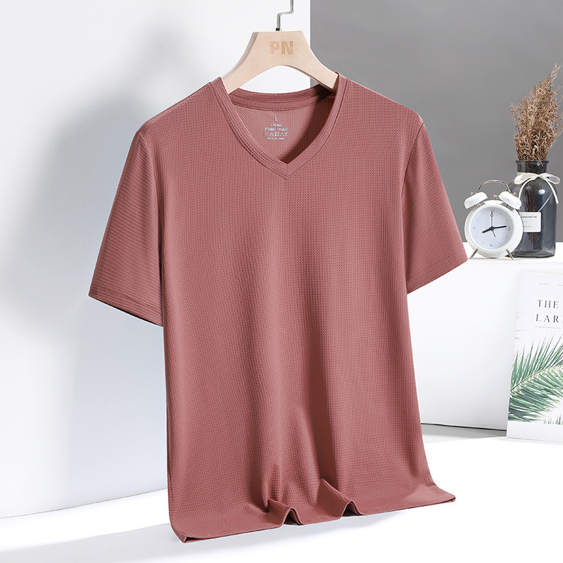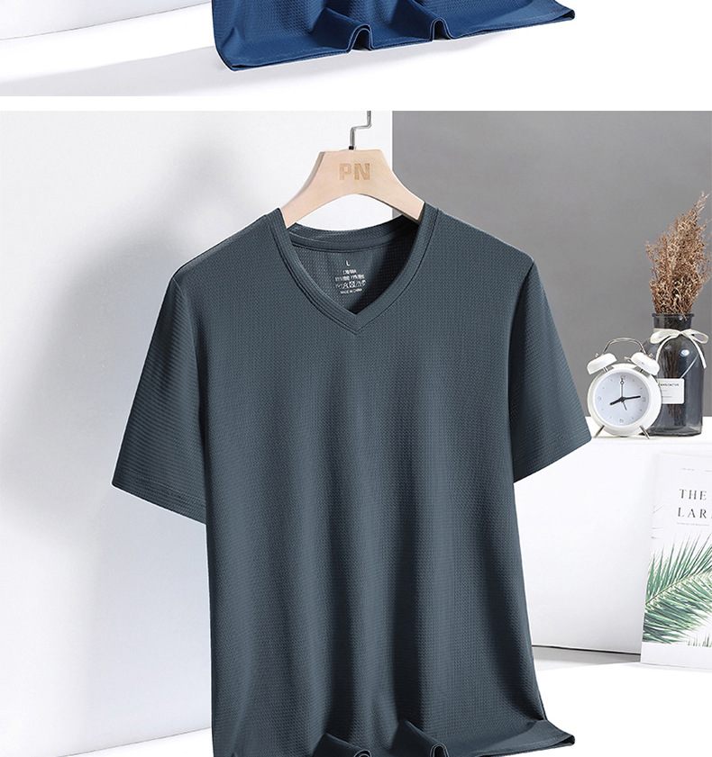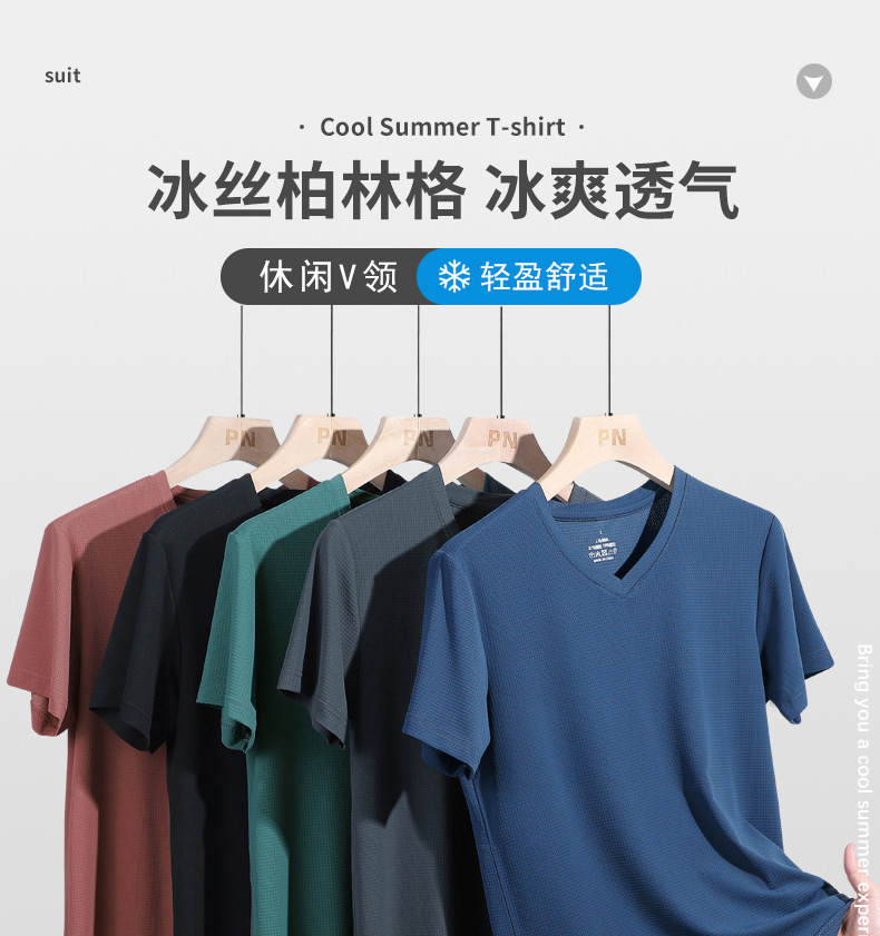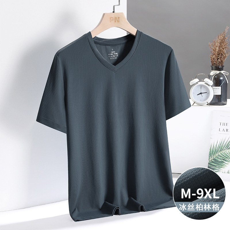짧은 소매 티셔츠 남성용 V 넥 여름 아이스 실크 얇은 반소매 티셔츠 단색 치킨 칼라 바닥 셔츠 대형 플러스 사이즈 느슨한스토어 가기