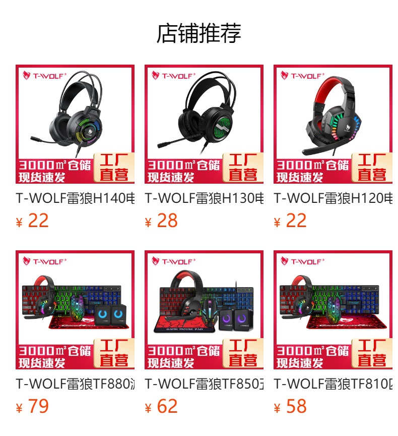 T-WOLF 레이 랭 H140 컴퓨터 헤드셋 발광 RGB 유선 게이밍 헤드셋 7.1 헤드셋 2 대 1스토어 가기
