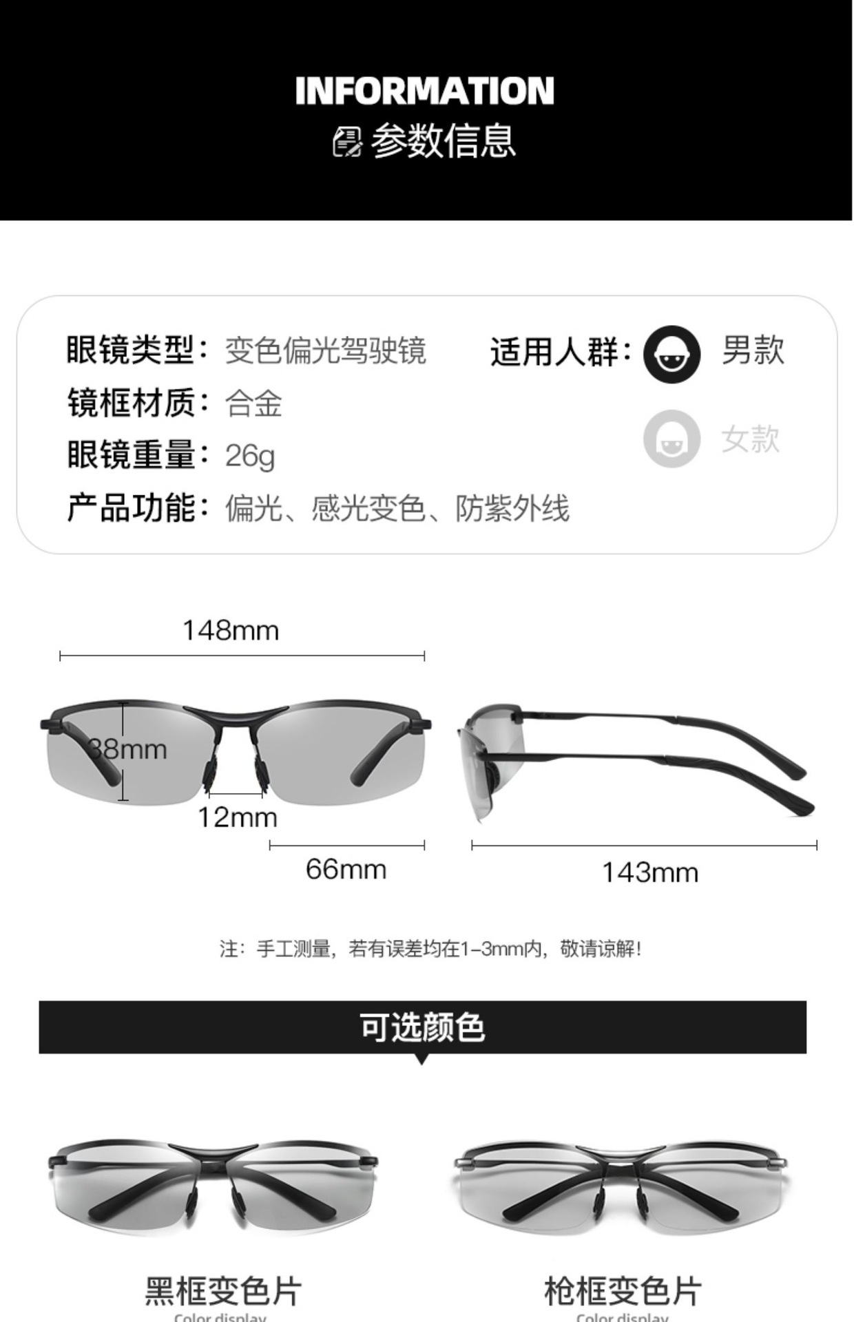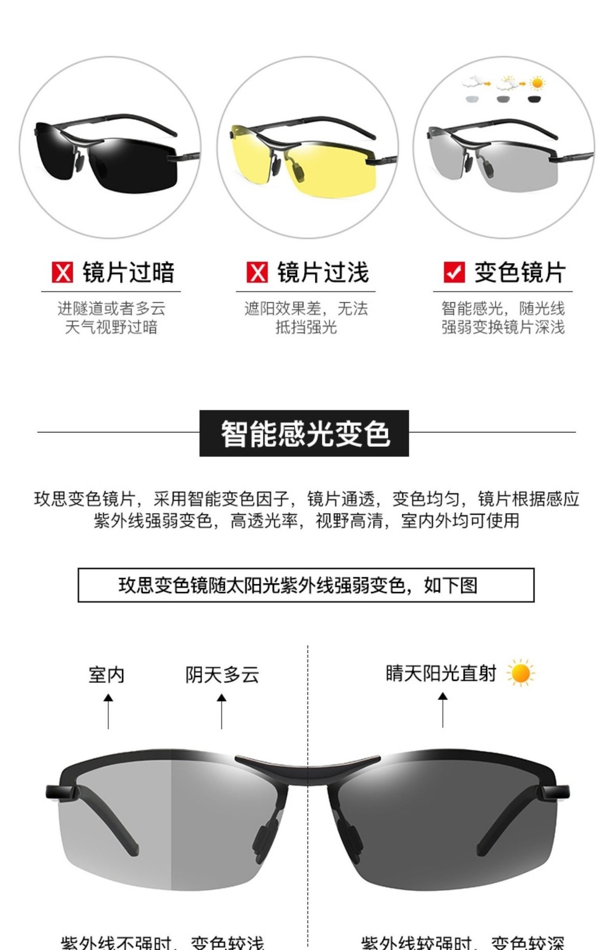공장 도매 새로운 UV 보호 편광 색상 변경 선글라스 남성 운전 선글라스 낚시 안경