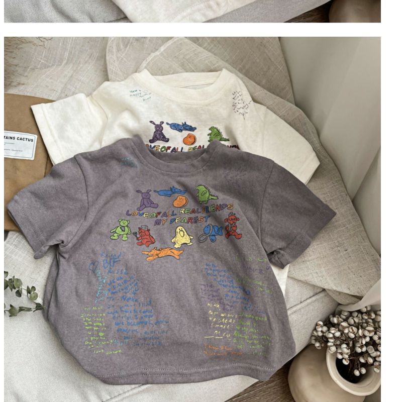 2024 여름 한국식 어린이 소년 소녀 올 매치 반팔 프린트 티셔츠 소년 소녀 바닥 셔츠 0006A012스토어 가기