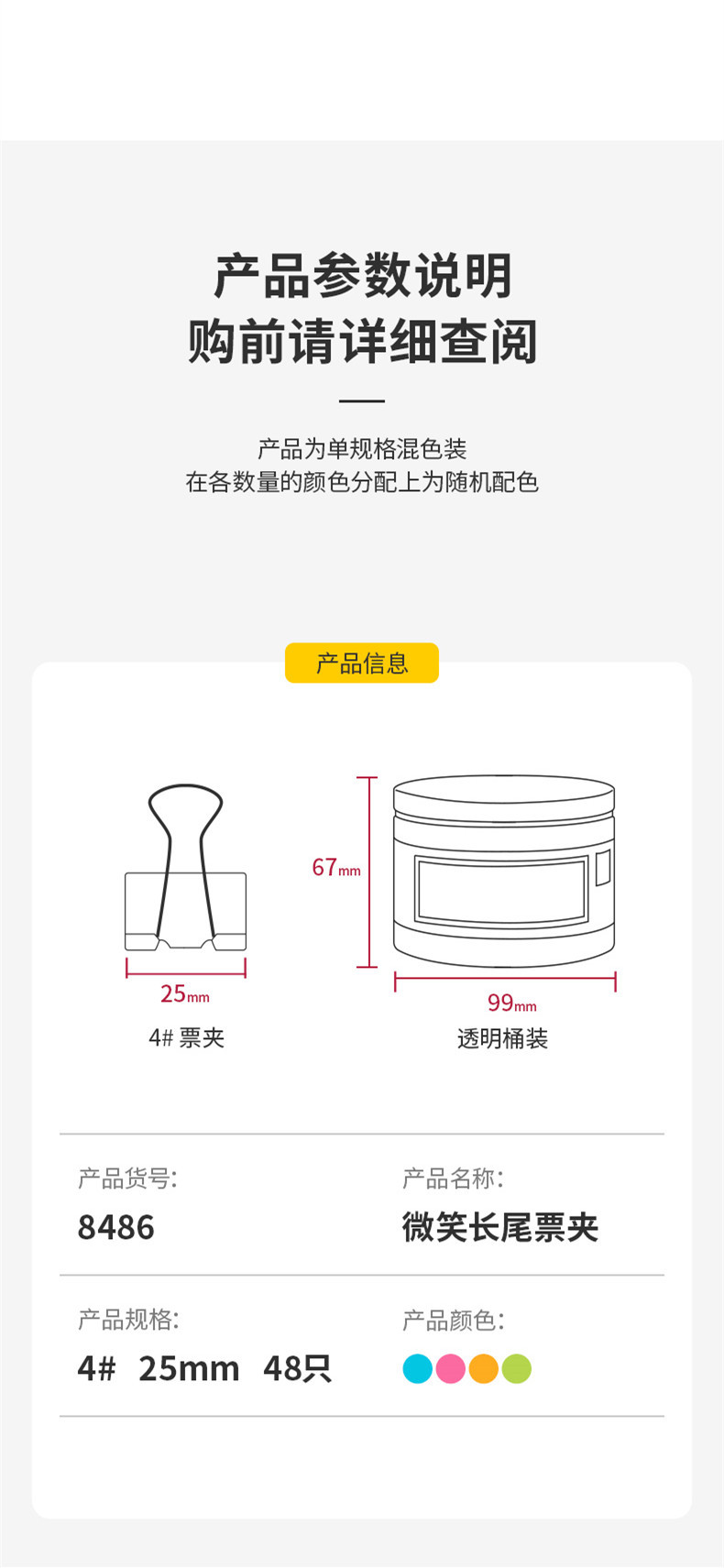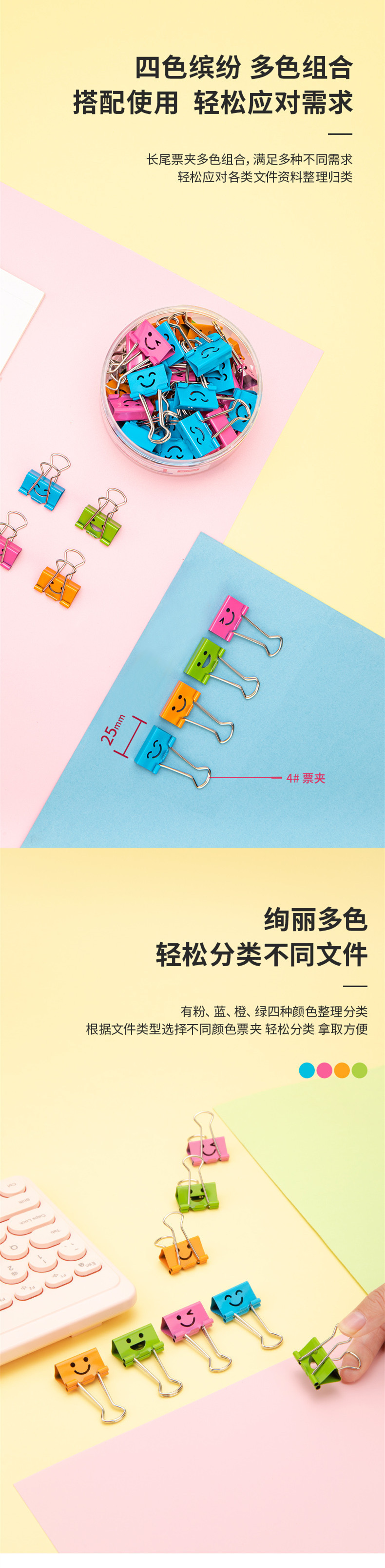델리 8486 미소 긴 꼬리 티켓 홀더 배럴 4 # 창조적 인 귀여운 티켓 소지자 dovetail 클립 폴더 25mm 피쉬 테일 클립 클립스토어 가기