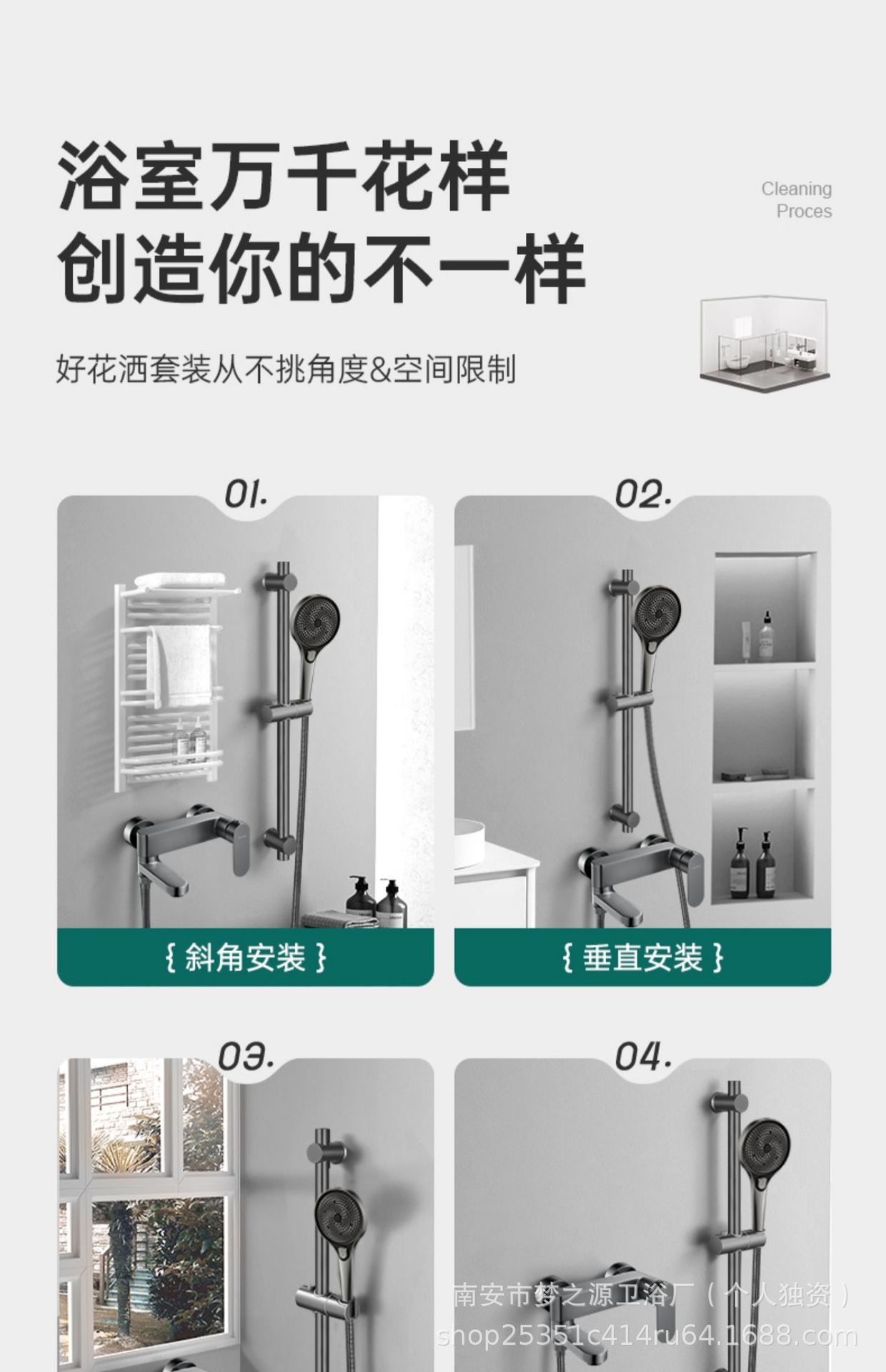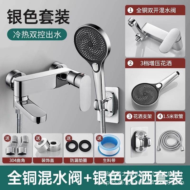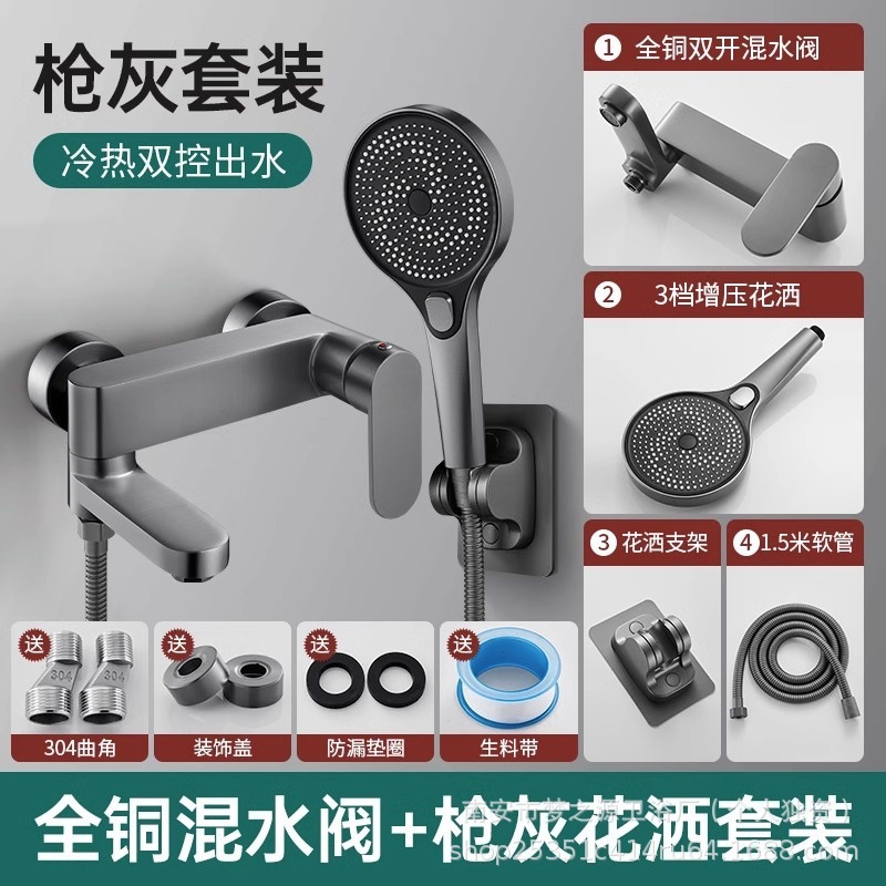 도매 총 회색 샤워 샤워 세트 샤워 노즐 모든 구리 온수 및 냉탕 홈 간단한 욕실 압력 샤워