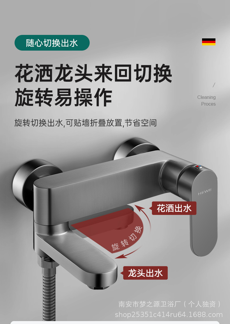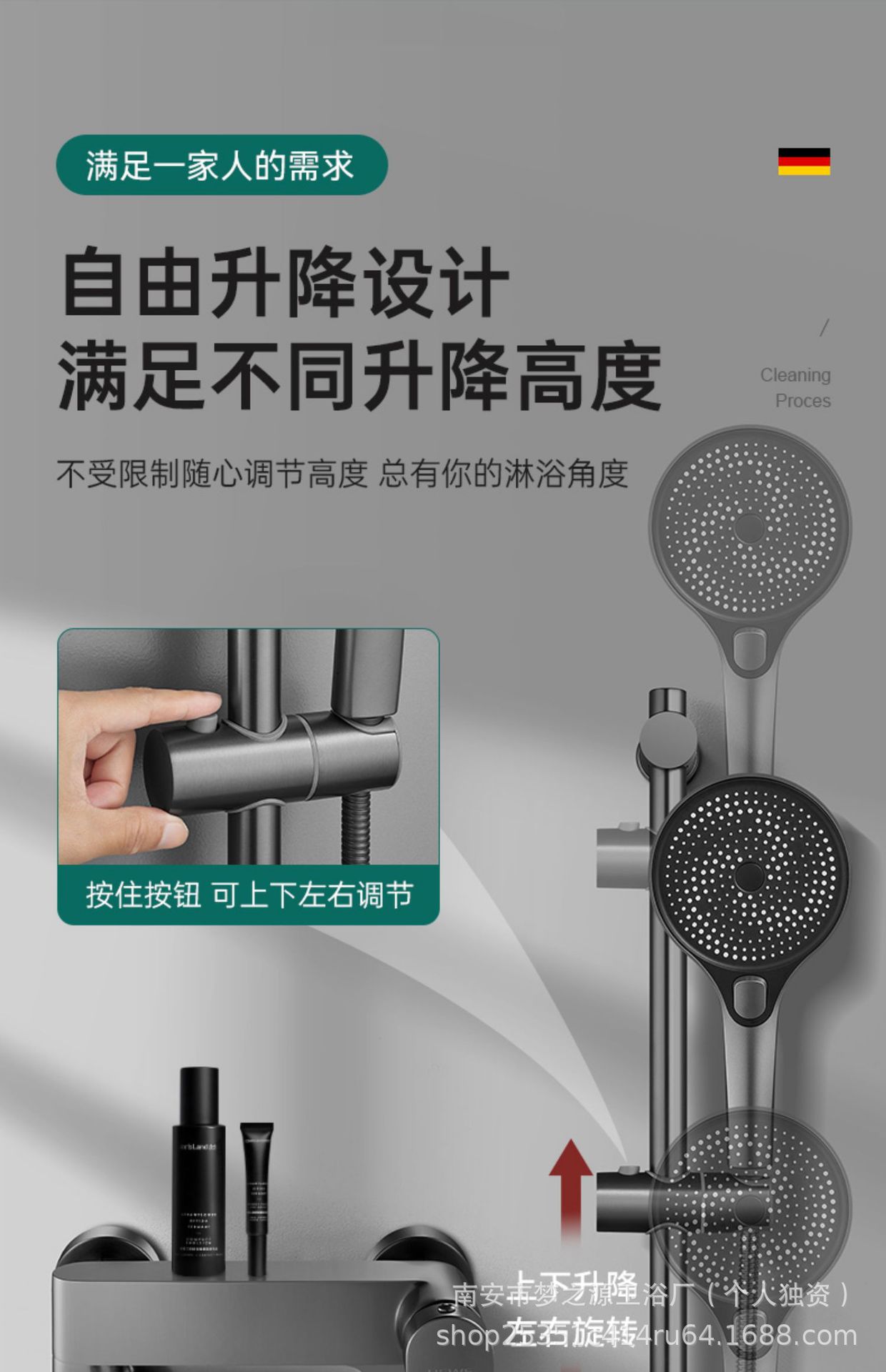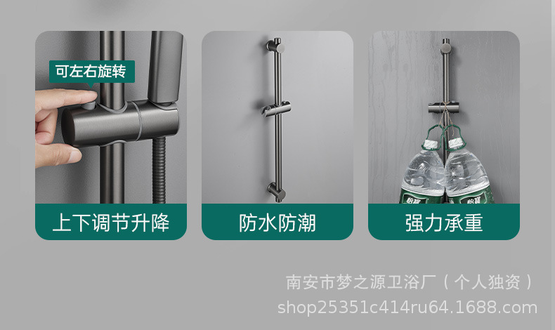 • 전체 구리 바디 [건 그레이] - 리프트 로드 샤워 세트 - 원형 노즐