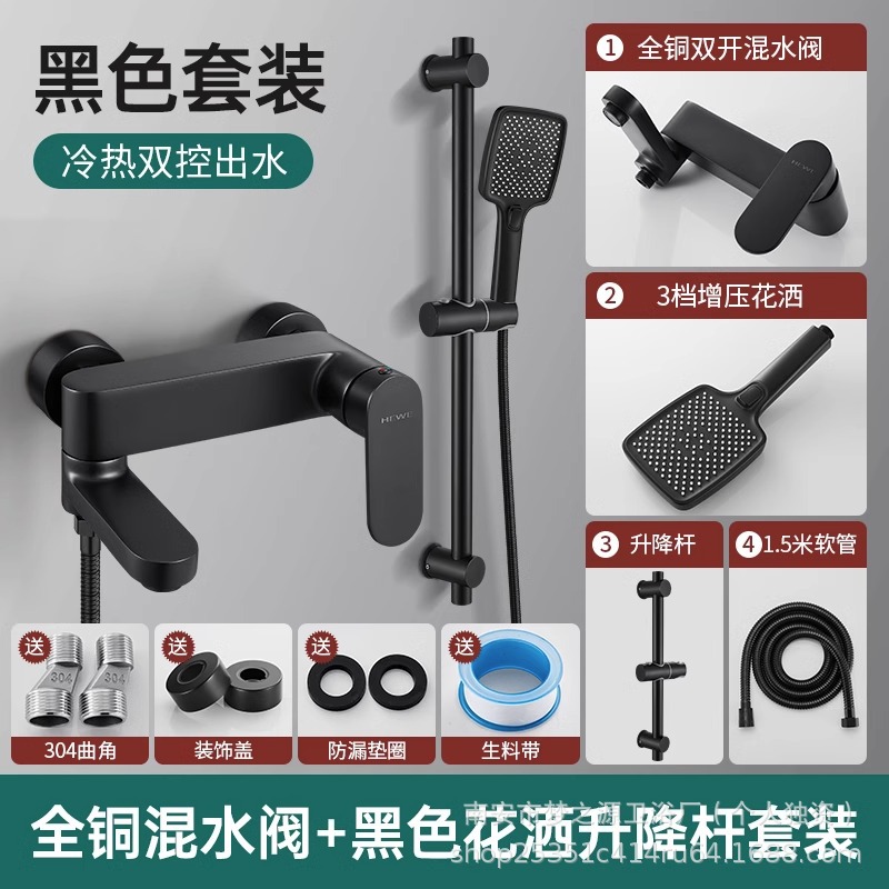 • 전체 구리 본체 [블랙] - 펀치 없는 샤워 세트 - 사각형 노즐