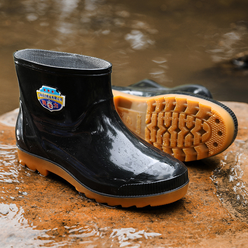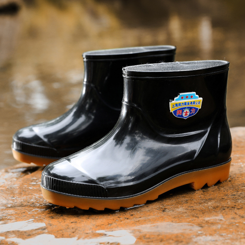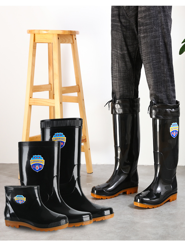 워터 부츠 남성용 드로 스트링 짧은 장화 비 슬립 노동 보호 건설 현장 중간 튜브 물 신발 기모 고무 신발 높은 튜브 장화 도매스토어 가기
