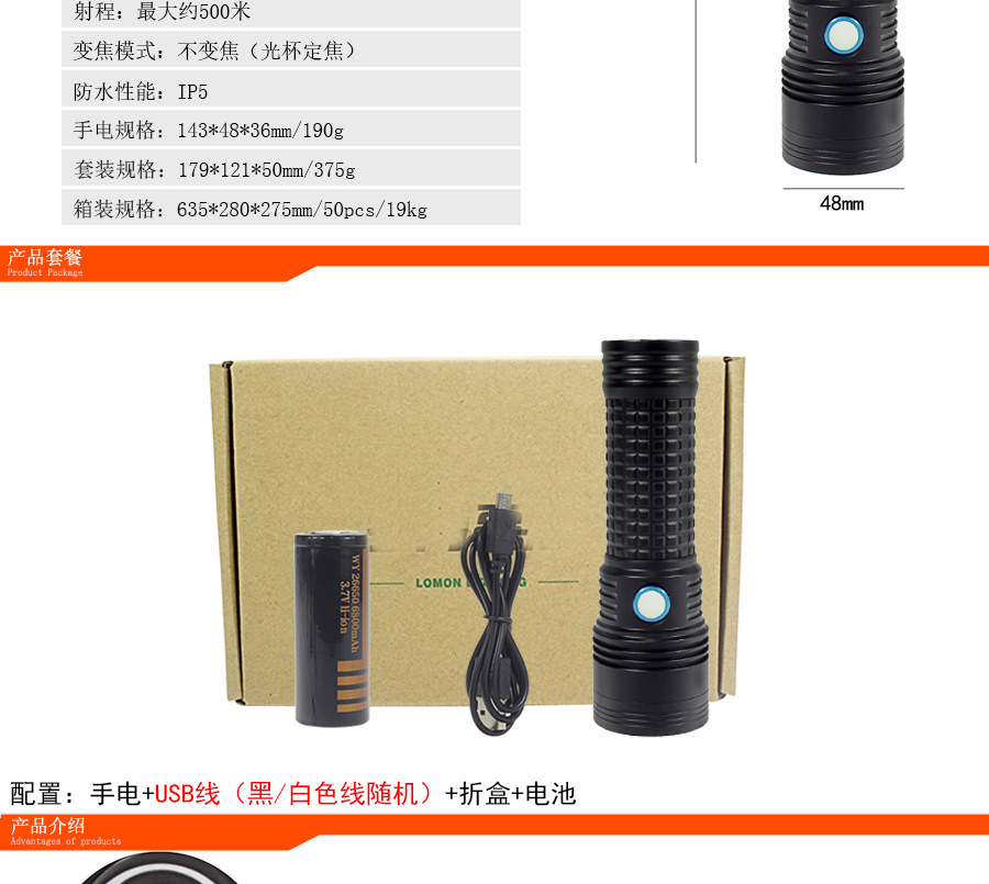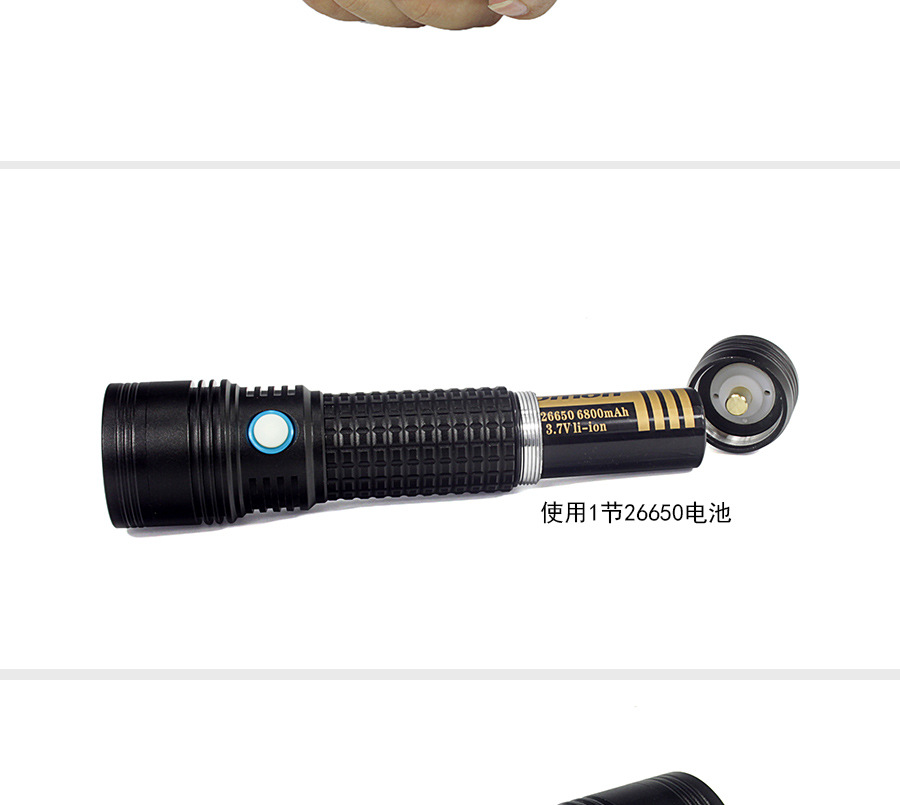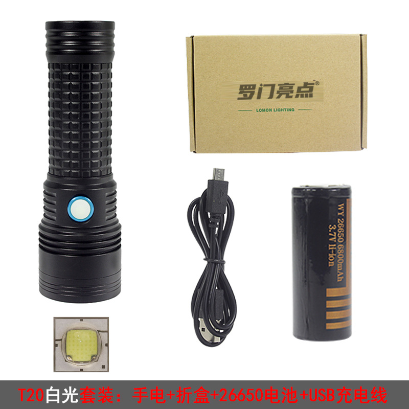 • 화이트 라이트 손전등 세트 (26650 배터리 및 상자 포함)