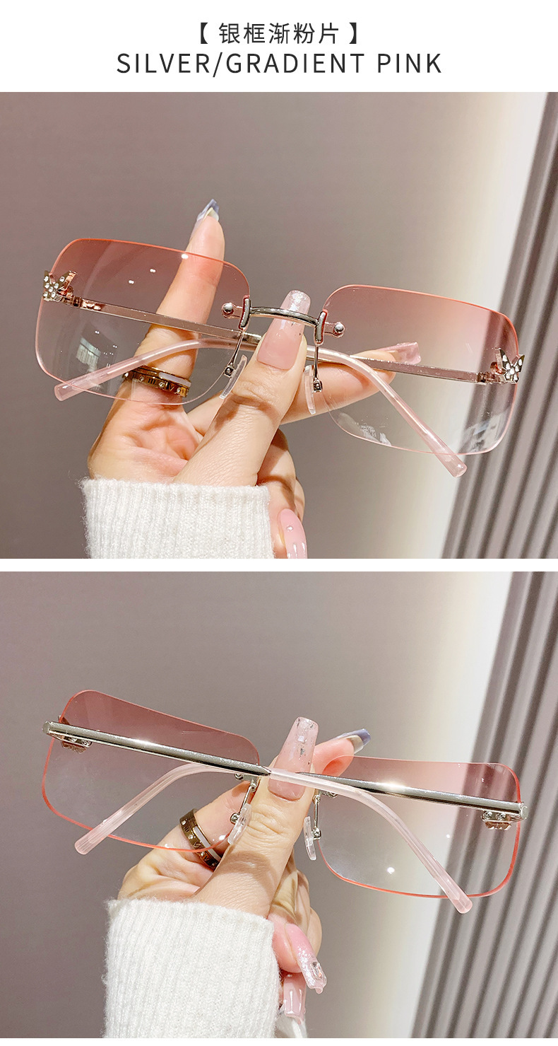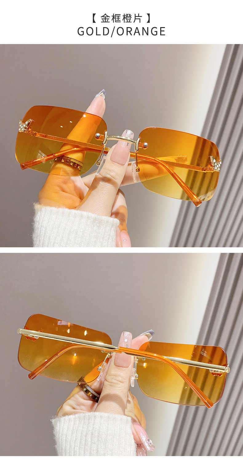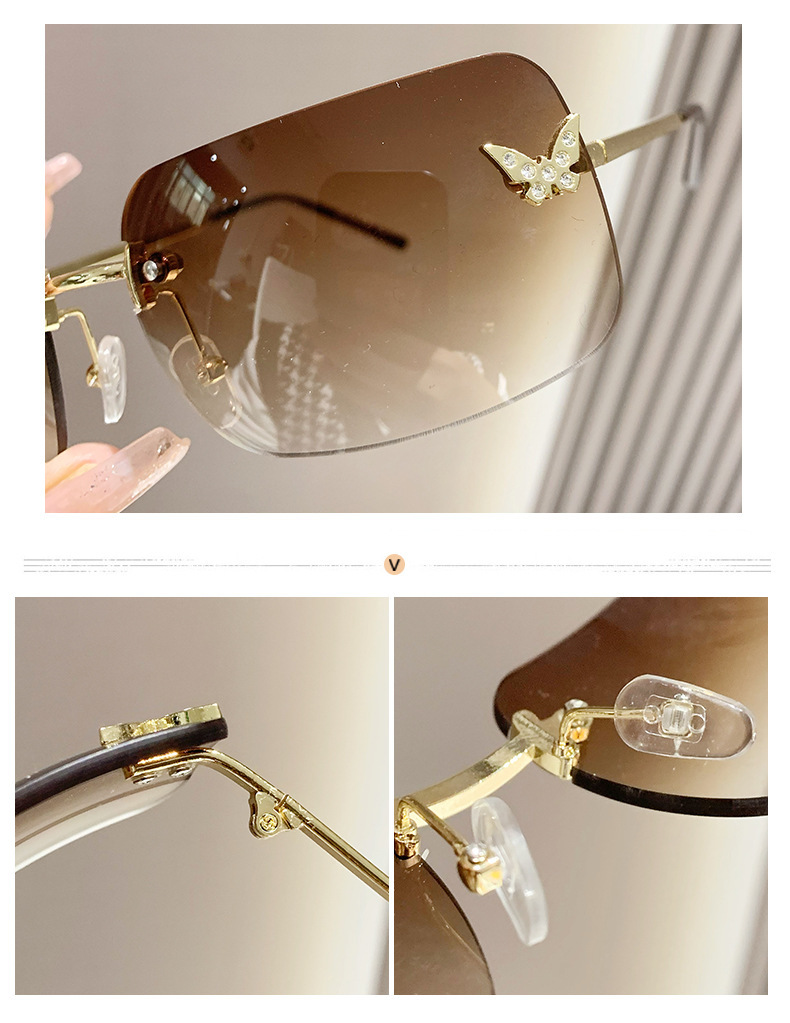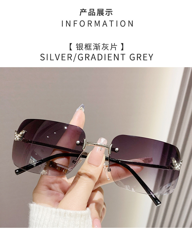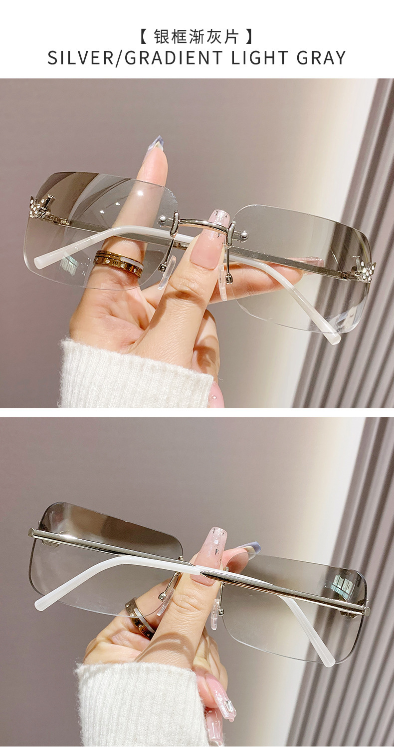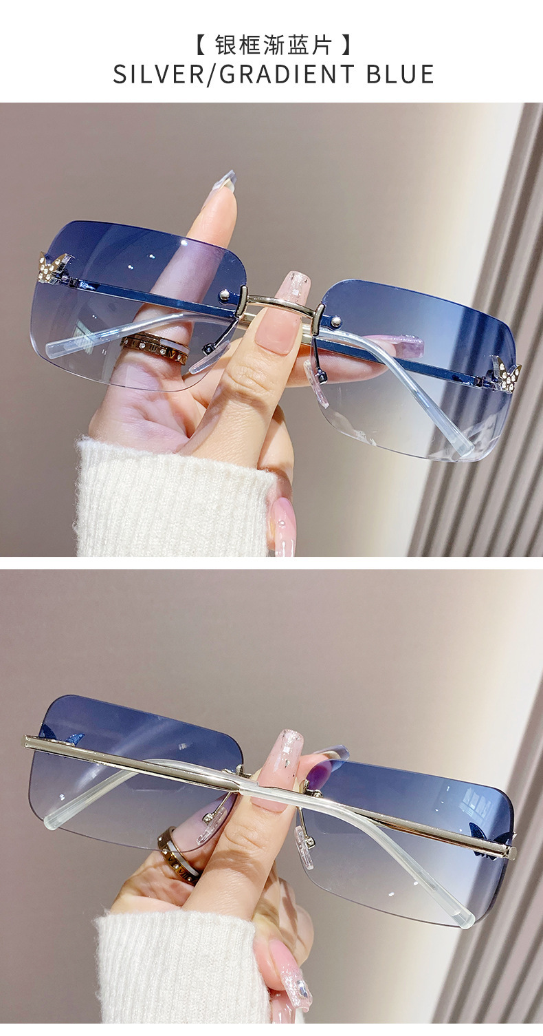 Rega 새로운 프레임리스 트리밍 선글라스 여성 마린 스퀘어 다이아몬드 나비 패션 그라데이션 선글라스 스트리트 샷스토어 가기