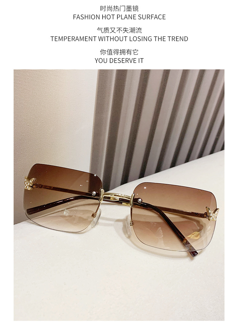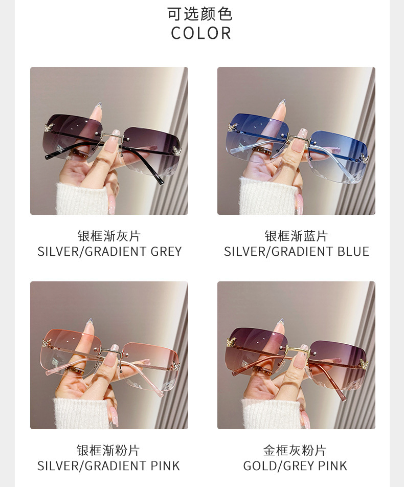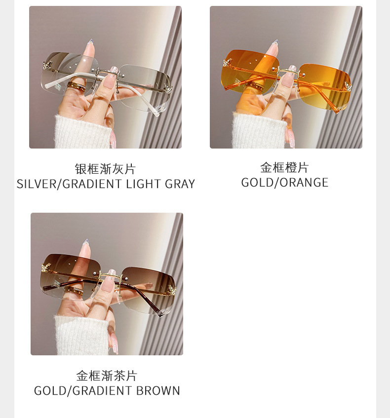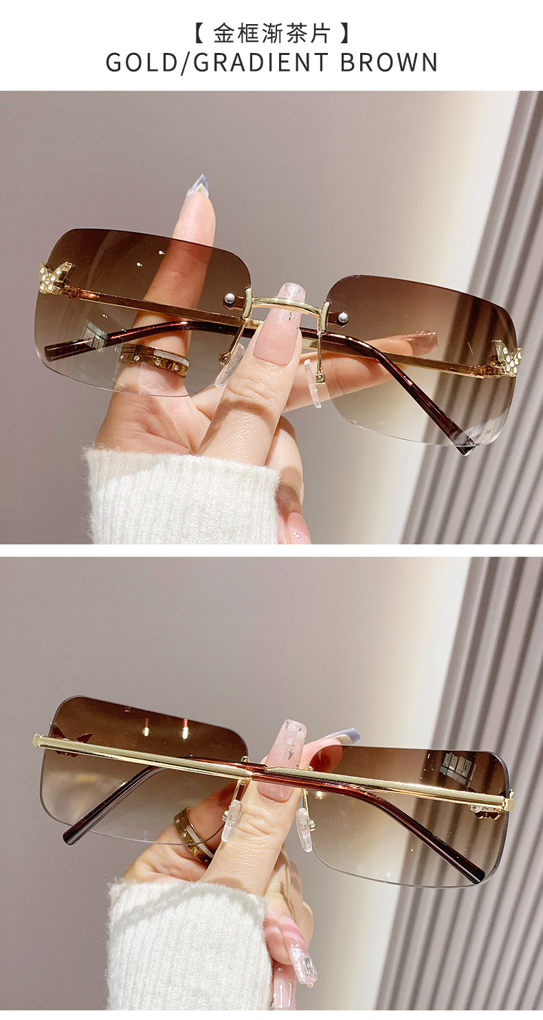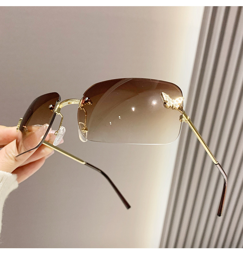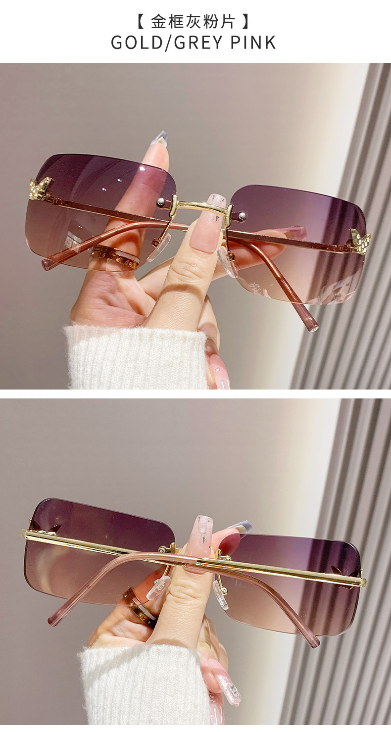 Rega 새로운 프레임리스 트리밍 선글라스 여성 마린 스퀘어 다이아몬드 나비 패션 그라데이션 선글라스 스트리트 샷스토어 가기