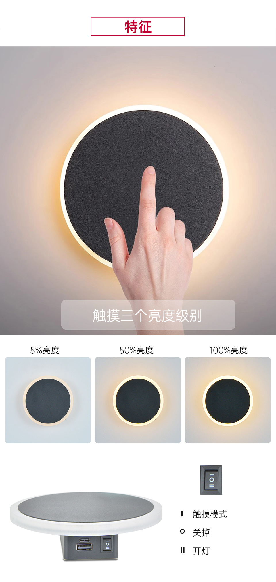 북유럽 미니멀리스트 led 벽 램프 현대 터치 조절 침실 침대 옆 램프 복도 거실 배경 따뜻한 장식 램프스토어 가기